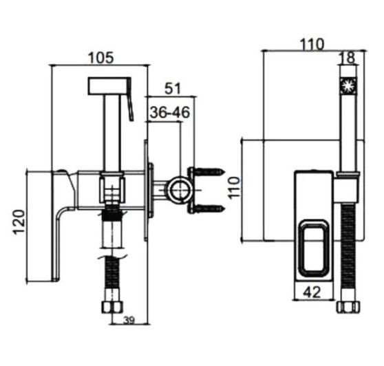 Гигиенический душ Gappo G7207-6 черного цвета устанавливается на стену. Крепления укомплектованы, скрываются они специальной накладкой, где размещен смеситель и держатель для лейки. Материал изготовления латунь, которая окрашена черной краской. Латунь не ржавеет и не гнется, а порошковая краска не слазит от постоянного воздействия сырости. Лейка однорежимная, длина шланга 1.2 метра. Конструкция компактна. Управление керамический картридж. Для включения лейки достаточно легкого нажатия на рычаг.