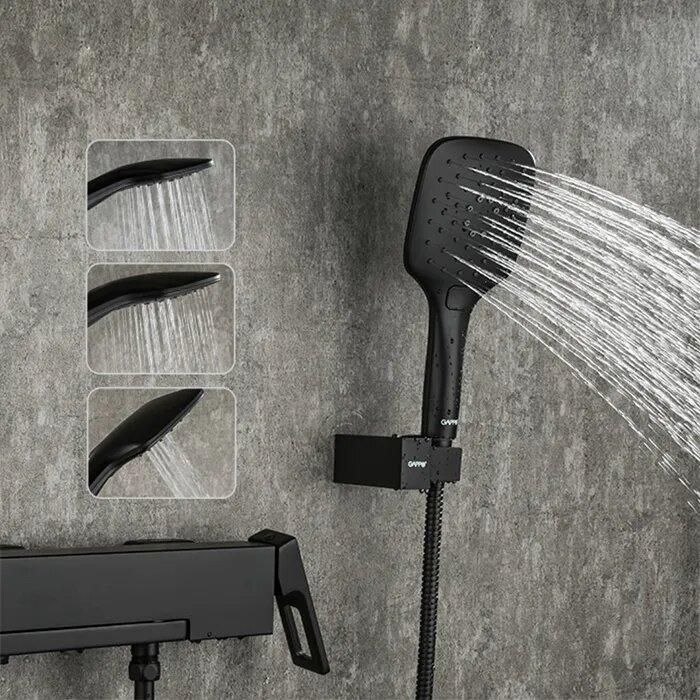 Смеситель для ванной комнаты с компактным, поворотным изливом Gappo G3217-6 . Сам излив позволяет переключаться со стандартного потока на душ. Лейка в комплекте работает в 3х режимах. Для ее установки идет специальный держатель.