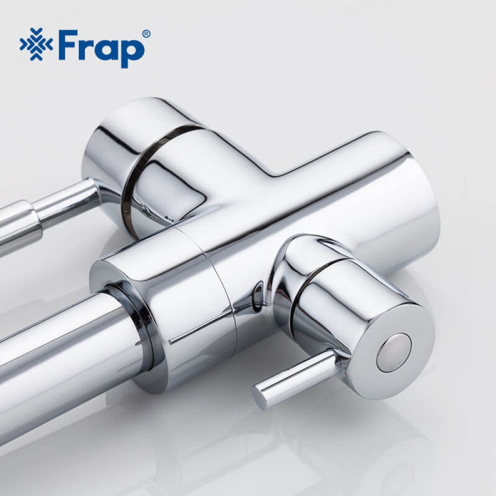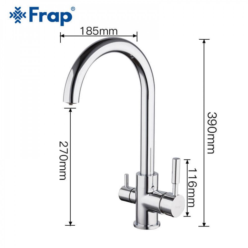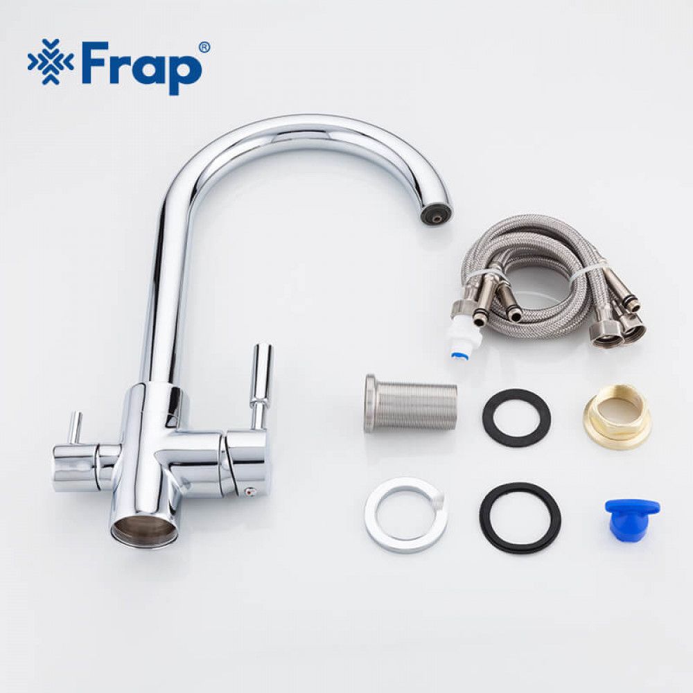 Смеситель для кухни для подключения к системе очистки питьевой воды Frap H52 F4352 латунный имеет оригинальное строение и классический дизайн. В нем подача воды в излив реализована так, что и очищенная, и водопроводная вытекают из одного аэратора не смешиваясь. Для гигиеничности выход на фильтрованную жидкость немного выдается вперед. Большим плюсом смесителя для кухни Frap F4352 является то, что он устанавливается на стандартное отверстие мойки. Шланги для подключения воды идут в комплекте их длинна составляет 45 см.