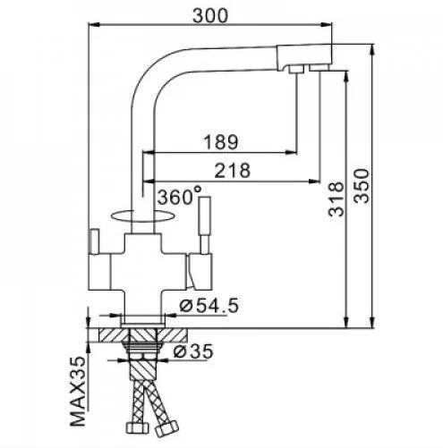 - высота до аэратора: 315 мм;