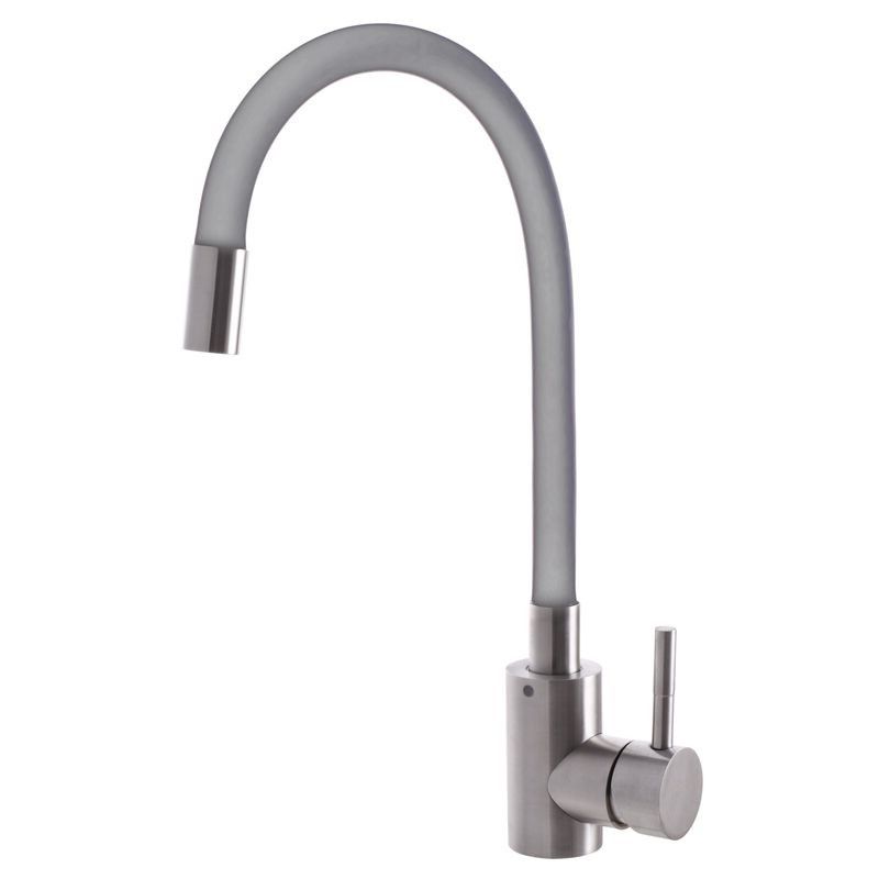 Смеситель для кухни из нержавеющей стали с гибким изливом серого цвета