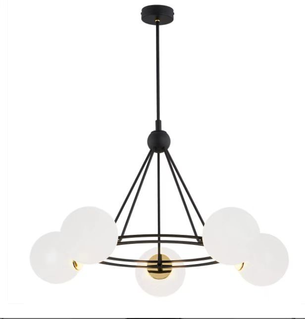 Эта люстра оснащена пятью патронами типа E27, каждый из которых рассчитан на лампы мощностью до 40W. Это обеспечивает гибкость в выборе освещения, позволяя вам использовать разнообразные лампы — от декоративных филаментных до эффективных светодиодных (LED) — для создания желаемой атмосферы и уровня яркости. Лёгкость замены ламп и широкий ассортимент цоколя E27 являются дополнительным преимуществом.