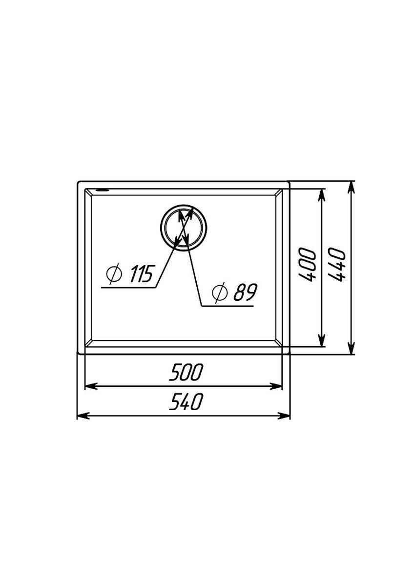 Размеры мойки – 540х440х200 мм, вес – 9,2 кг, сифон – евросифон с широкой горловиной, 110 мм.
