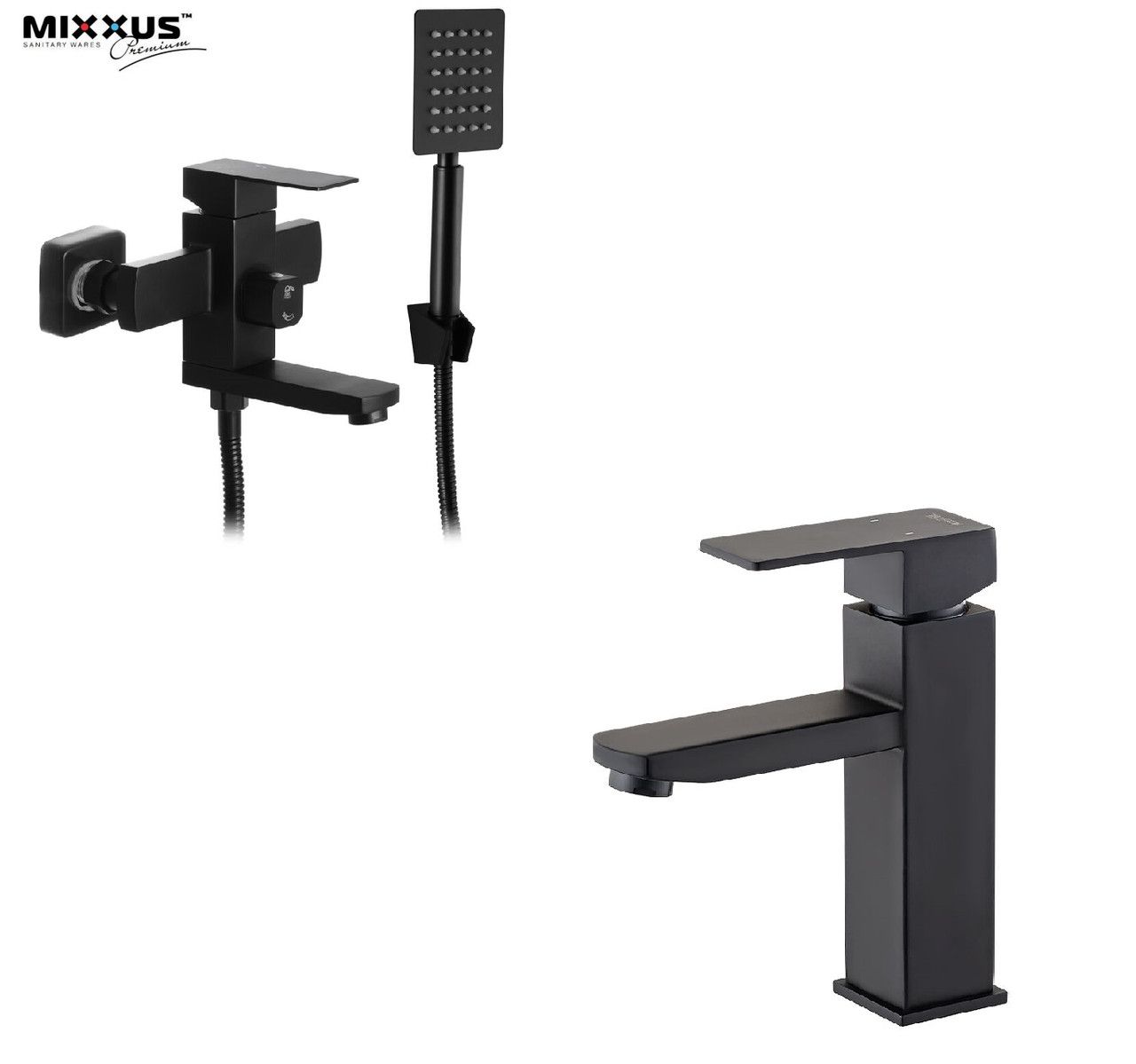 Набор смесителей для ванной 2 в 1 Mixxus Kub 009 Euro Black + Mixxus Kub 001 Black