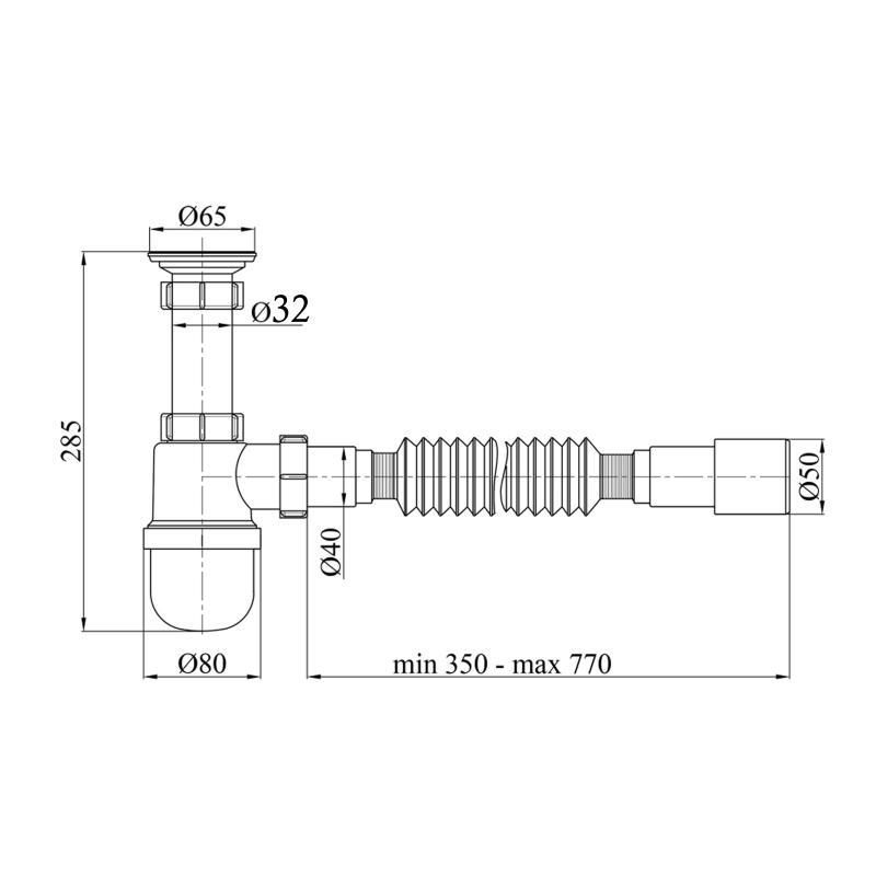 Дополнительные характеристикиДлина гофрированной трубы: 350 - 770 мм.