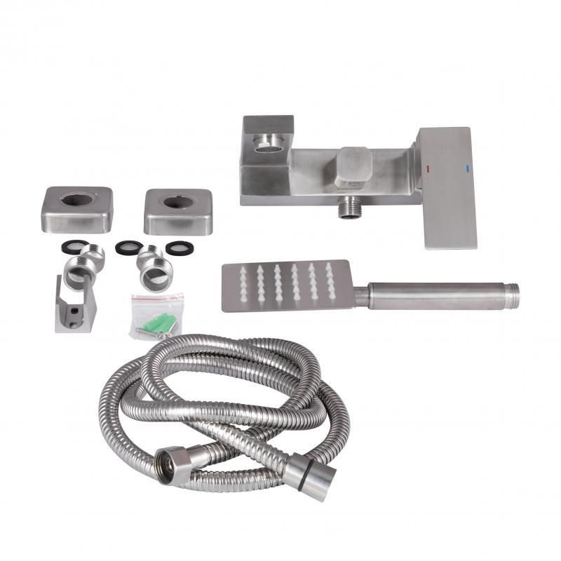 Дополнительные характеристикиПищевая нержавеющая сталь AISI 304. Душевой шланг с функцией анти-скручивания. Габариты ручной лейки (ВхШ): 100х80 мм. Кронштейн с двумя положениями для ручной лейки. Количество сопел в ручной лейке: 30 шт. Длина душевого шланга - 1500 мм.