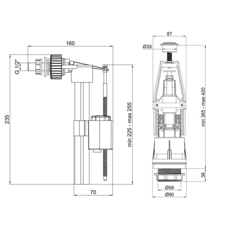Комплект арматура с клапаном боковой подачи 1/2 Lidz