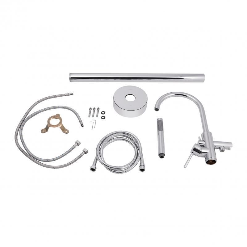 Смеситель для ванны Qtap Jay с длинным поворотным изливом (c душевым гарнитуром) QTJAY2601CRW45552 В наличии