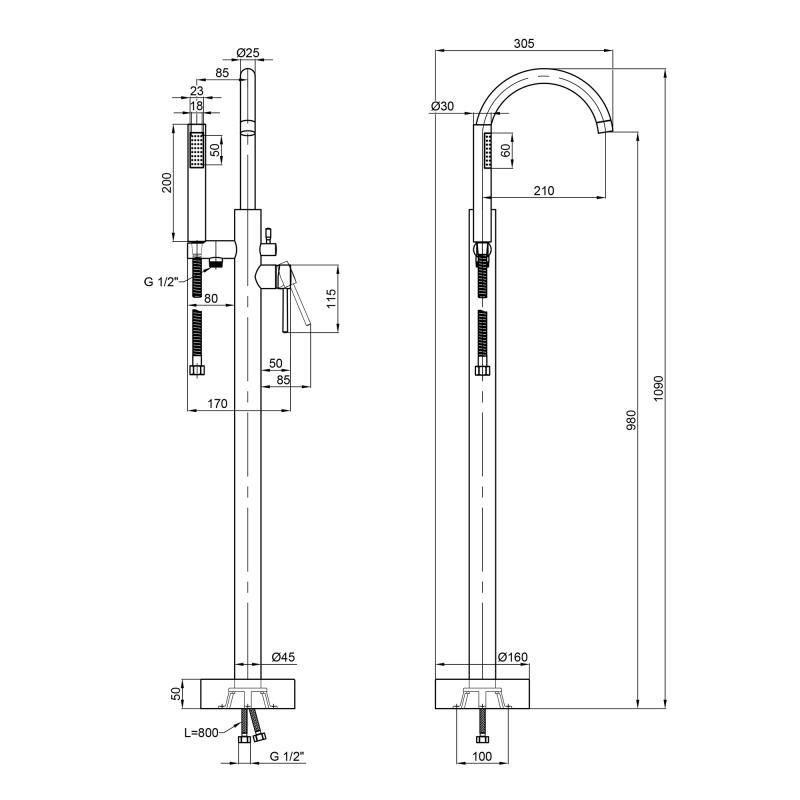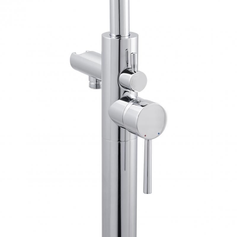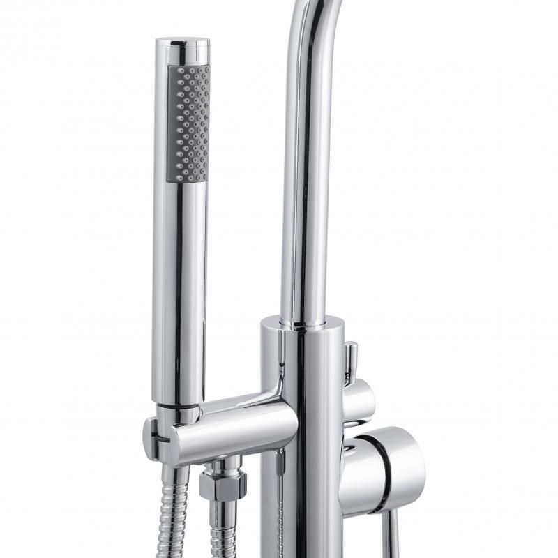 Напольный cмеситель для ванны Qtap Podlaha 19103UGC изготовлен из износостойких латуни и нержавеющей стали. Благодаря равномерному хромированному покрытию изделие имеет привлекательный внешний вид и устойчиво к механическим повреждениям. Смеситель комплектуется душевой лейкой с интегрированным в штангу держателем и душевым шлангом. Подача воды регулируется с помощью джойстика, а переключение на душевой режим - дивертором. Такой смеситель выгодно подчеркнет интерьер с отдельностоящей ванной.