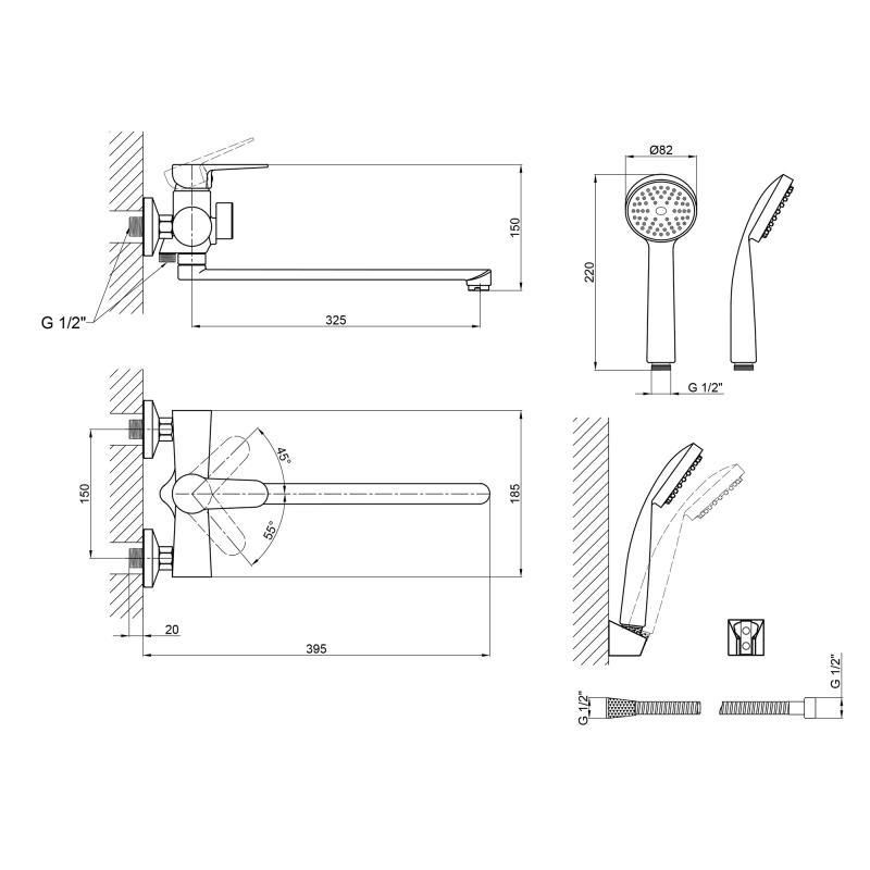 Смеситель для ванны Lidz Nicole 005 с поворотным изливом (c душевым гарнитуром) (k35) LDNIC005BLA45183 Black