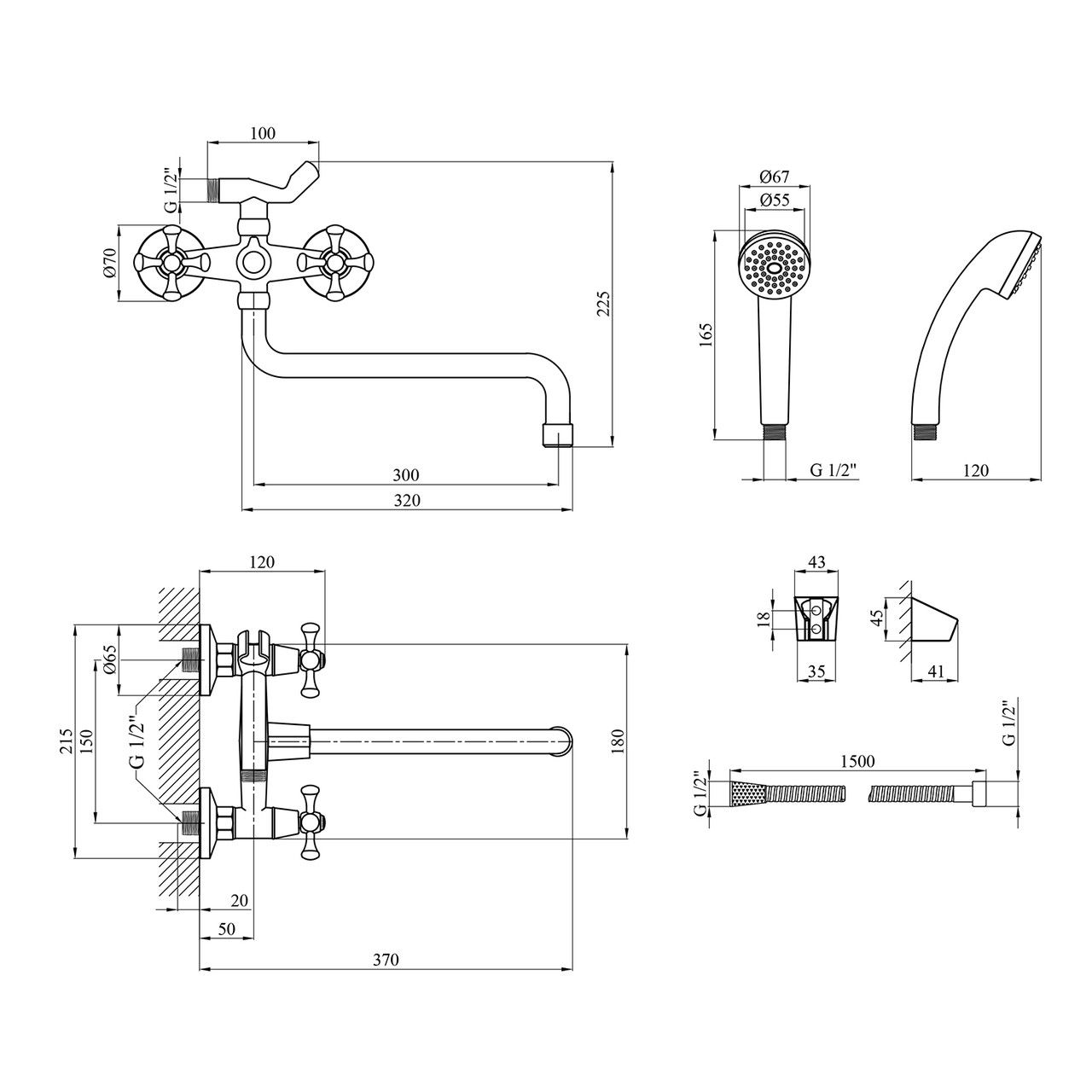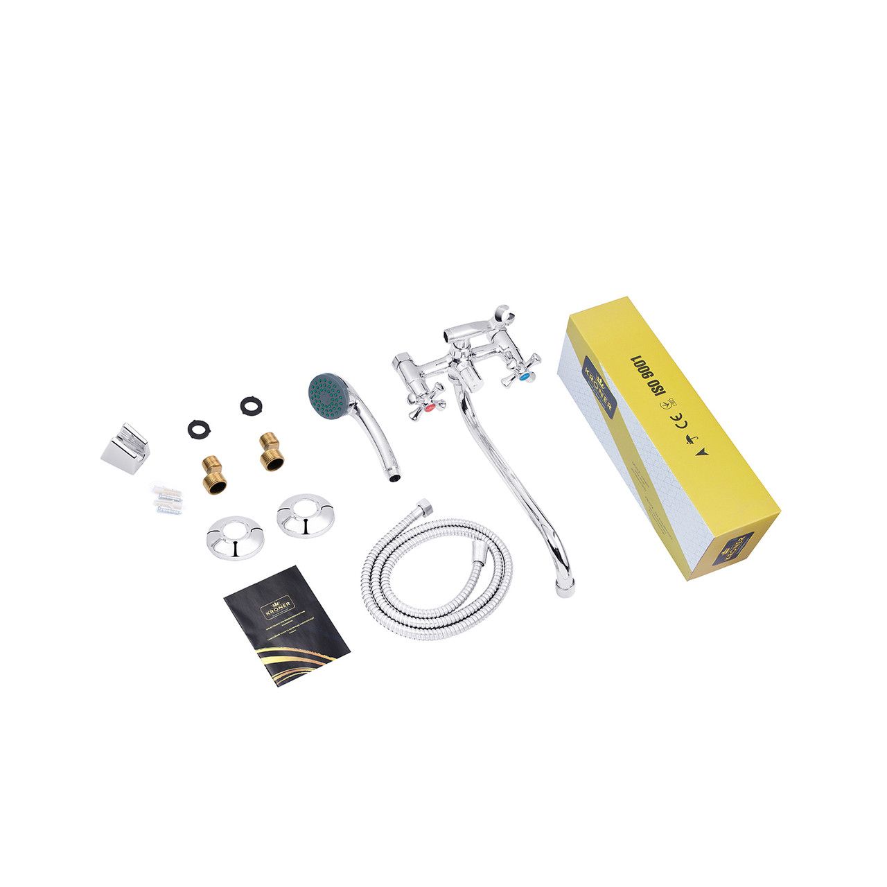 КомплектацияСмеситель, лейка для ручного душа, душевой шланг, кронштейн для ручного душа, крепежи, инструкция.