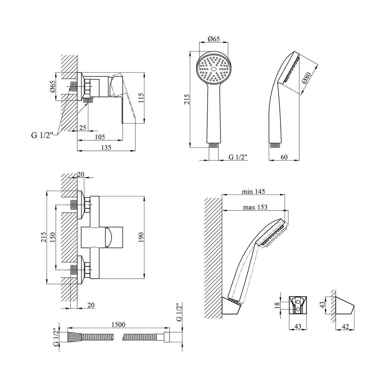 Длина душевого шланга, мм1500