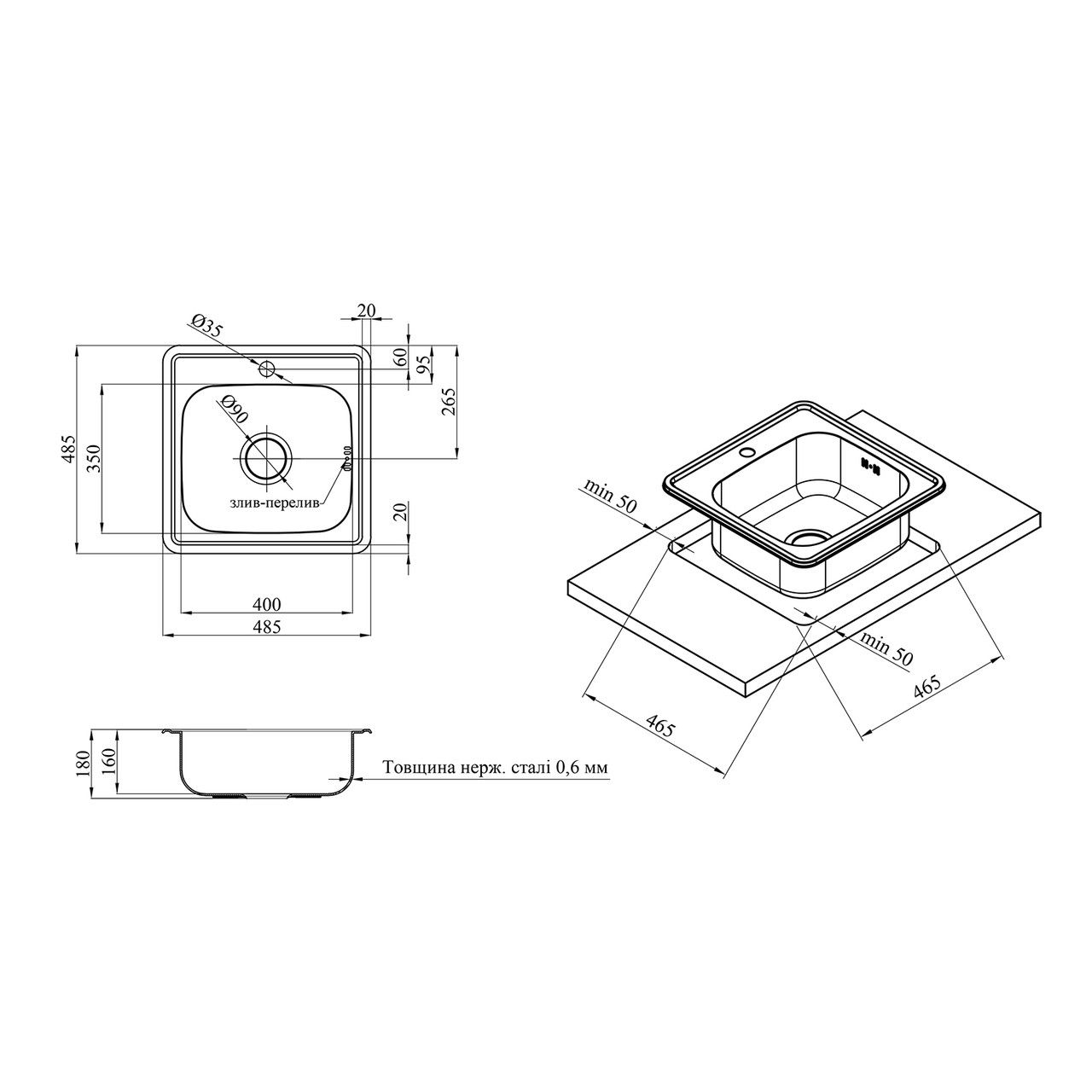 Кухонная мойка Kroner KRP Satin - 4848 (0.6 мм)