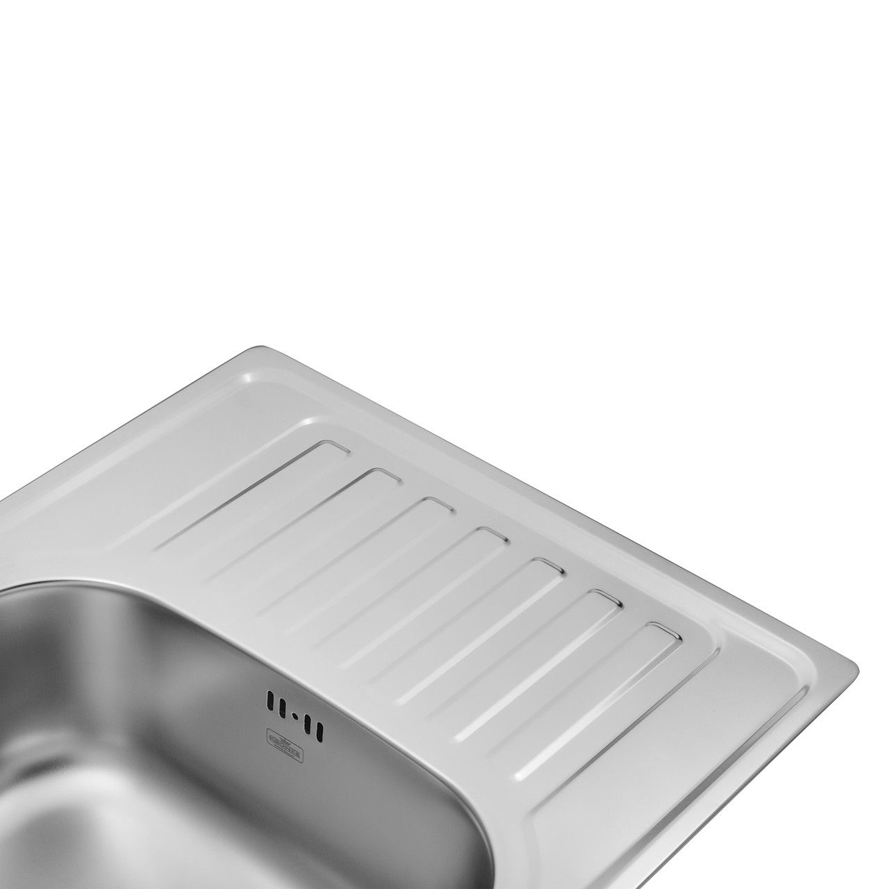 Кухонная мойка Kroner KRP Satin - 6950 (0,8 мм) – идеальное решение для современной кухни. Мойка выполнена в виде прямоугольной чаши с крылом для посуды, монтируется врезным способом. Изготовлена из высококачественной нержавеющей стали, что обеспечивает длительный срок службы и легкую чистку. Функциональная, надежная и эстетически привлекательная мойка от Kroner станет незаменимым помощником в приготовлениях и украшением вашей кухни.