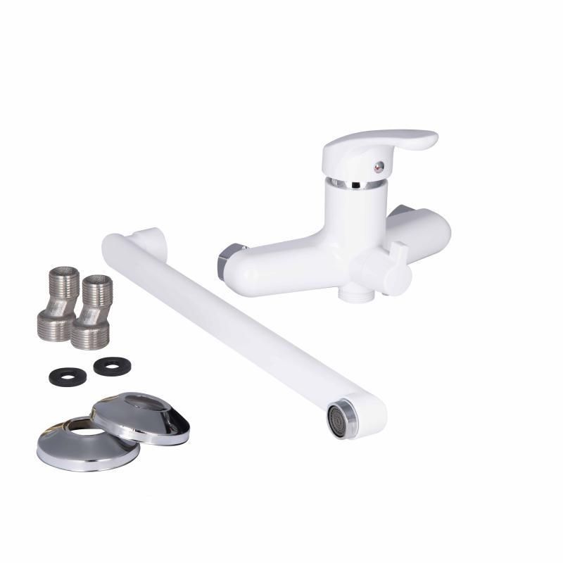 Смеситель для ванны белый Brin 006 Euro с лейкой и шлангом из термопластика