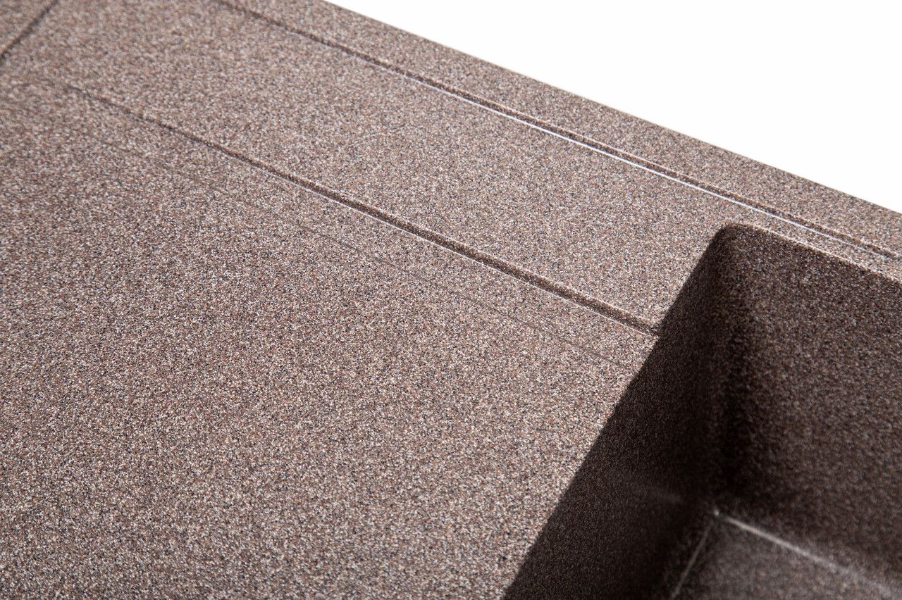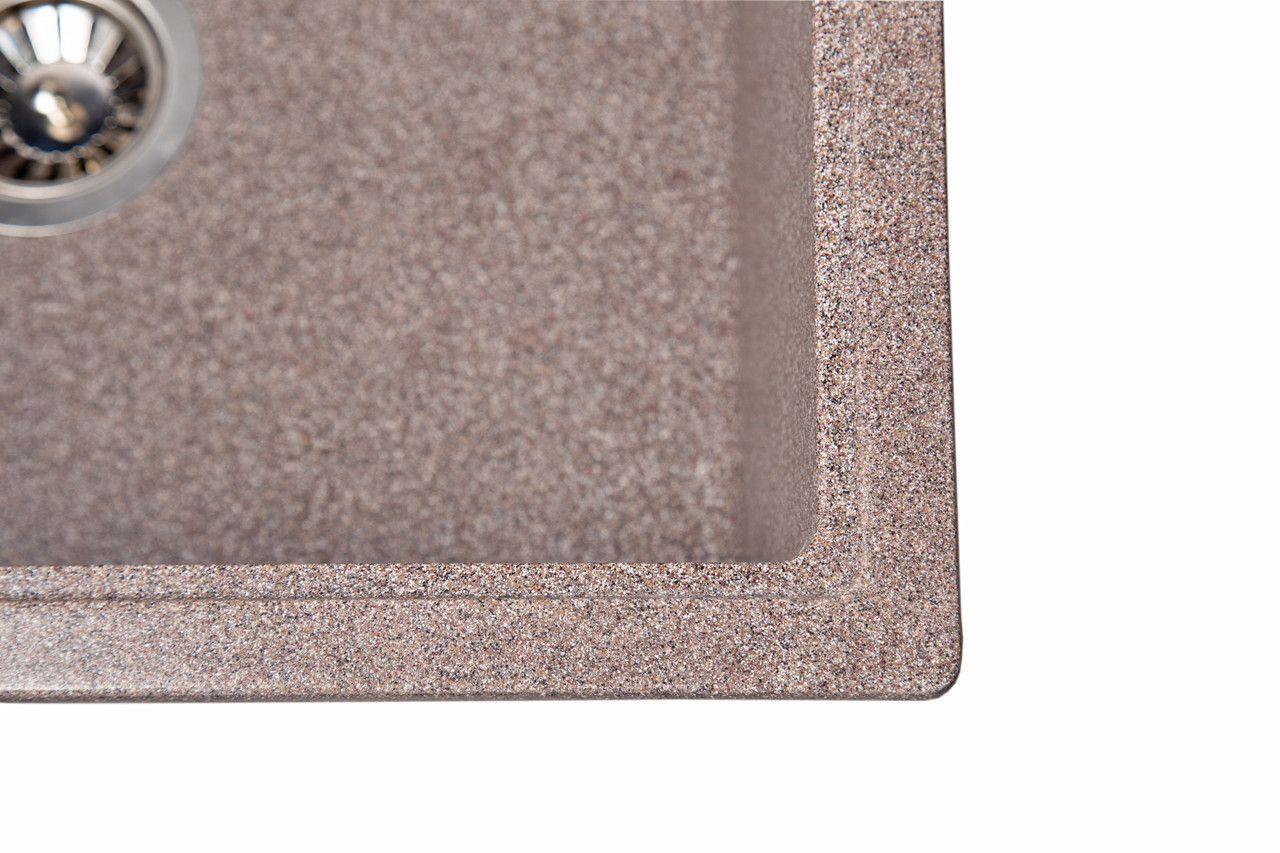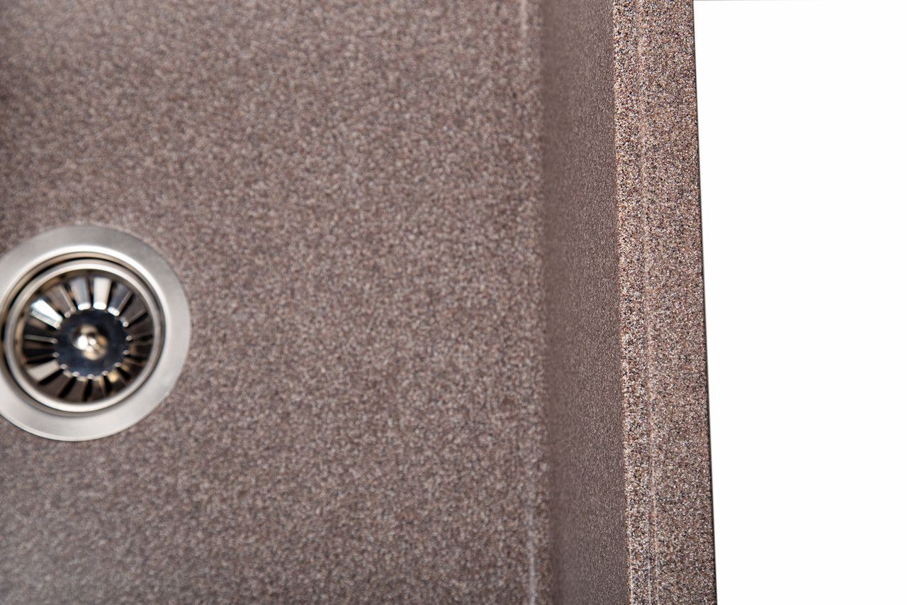В процессе производства моек Romzha концентрация кварца на поверхности раковин увеличивается, а акриловая смола уменьшается. Благодаря этому все полезные свойства гранита – а именно стойкость к царапинам и пятнам – выражаются на передней части раковины. Там, где это нужно