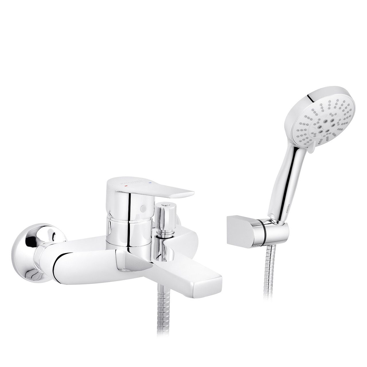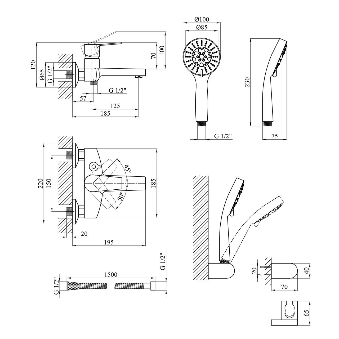 КомплектацияСмеситель, лейка для ручного душа, душевой шланг, кронштейн для ручного душа, крепежи, инструкция.