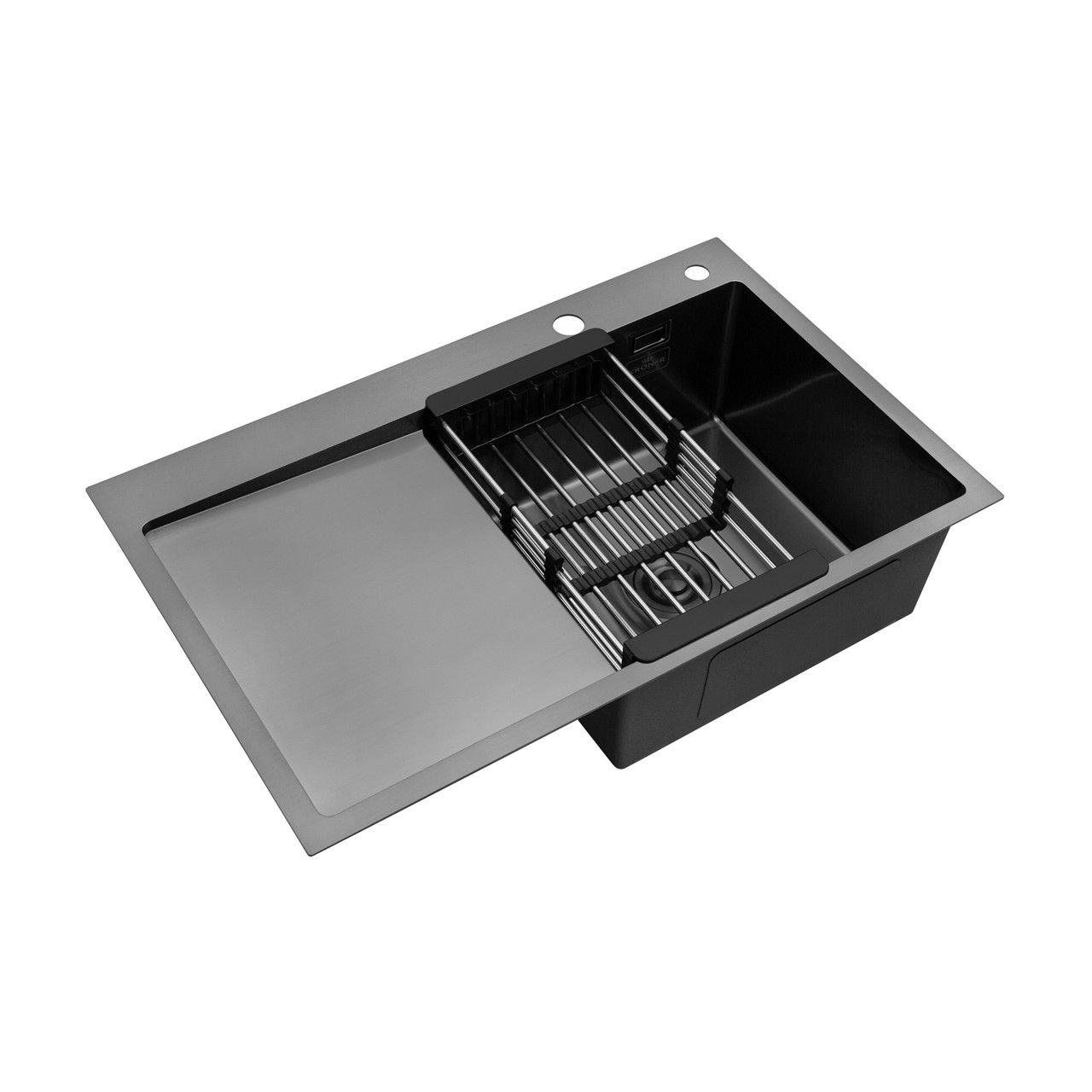 Кухонная мойка Kroner KRP Schwarze - 7849RHM PVD (3/1 мм)