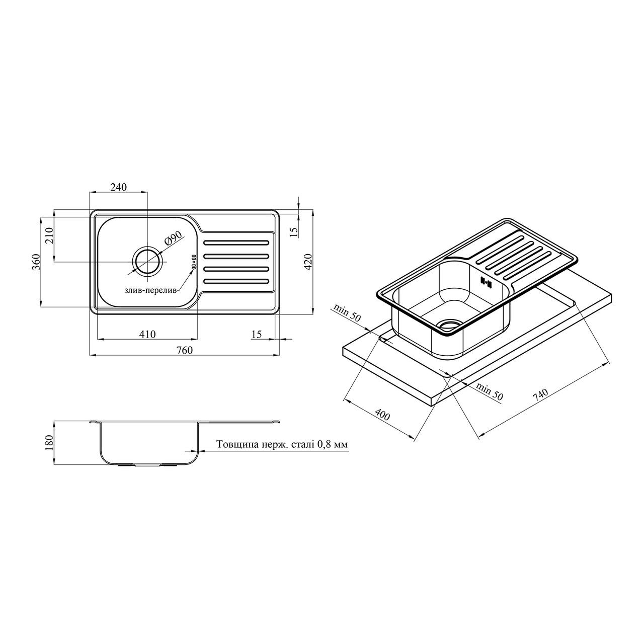 Кухонная мойка Kroner KRP Satin - 7642 (0.8 мм)