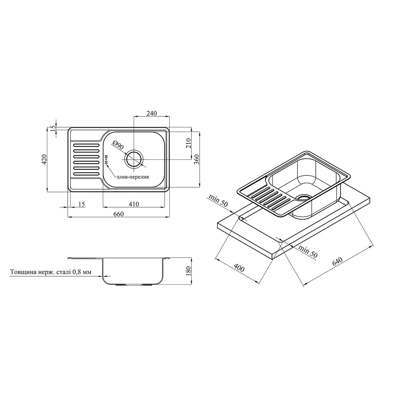 Толщина материала мойки, мм0,8