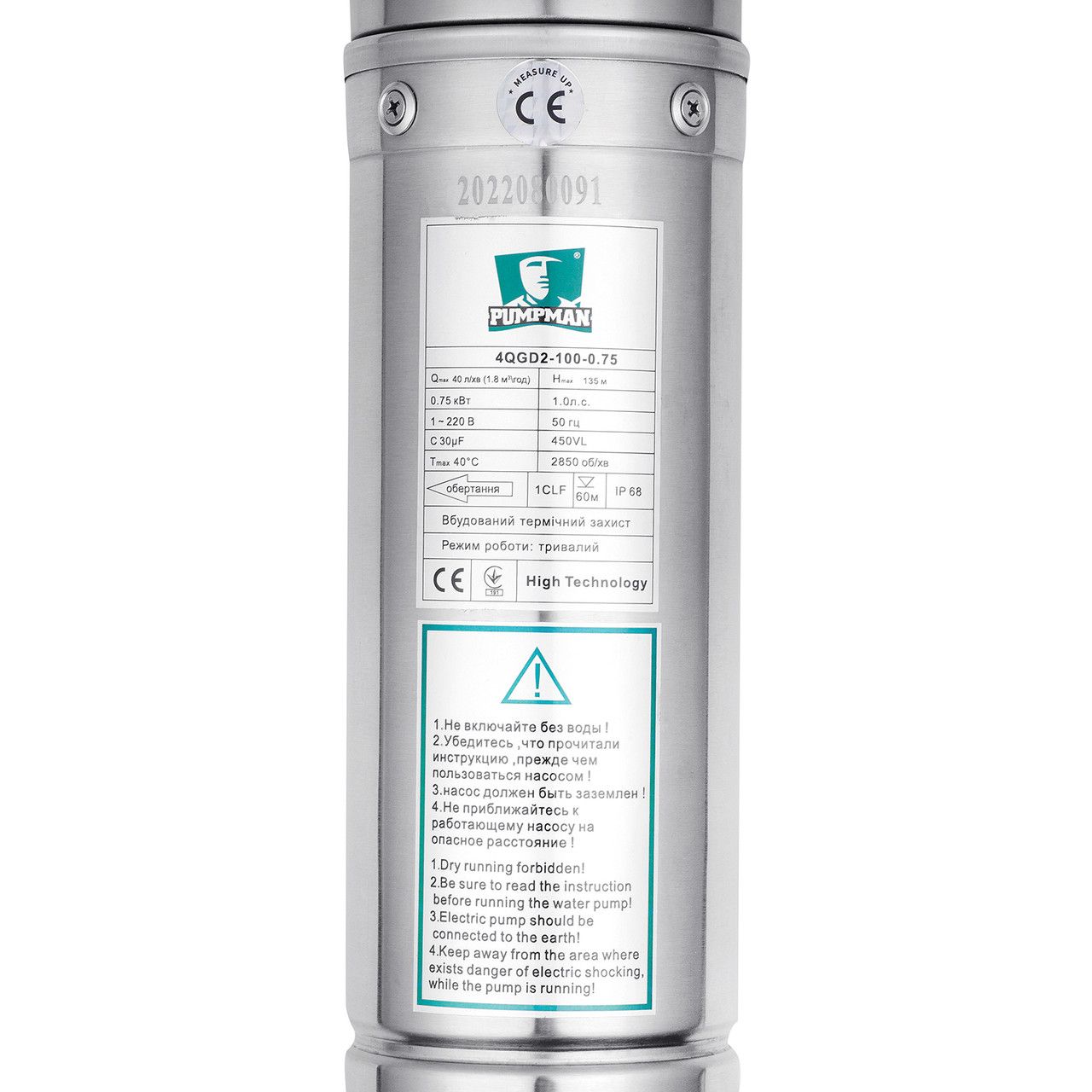 Насос глибинний шнековий Pumpman 4QGD2-100-0.75 кВт Нmax 135 м Qmax 2,4 куб.м 750 Вт