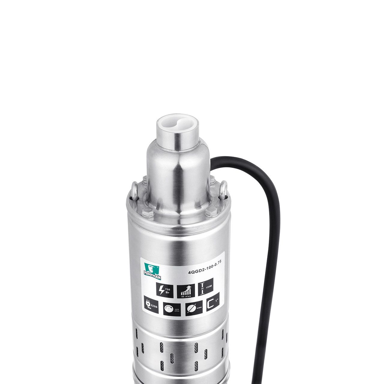 Насос устанавливают так, чтобы он был полностью покрыт водой, находился ниже зеркала ее поверхности (рекомендуемая глубина погружения — до 30 метров). Насос погружной шнековый Pumpman 4QGD 2-100 0,75 кВт целесообразно использовать там, где есть необходимость закачать воду из скважины или резервуара для водоснабжения. Движущим механизмом выступает шнек – винт определенной конструкции из нержавеющей стали, размещенный в стакане из полипропилена. Диаметр корпуса – 4, а напорного патрубка – 1 дюйм.