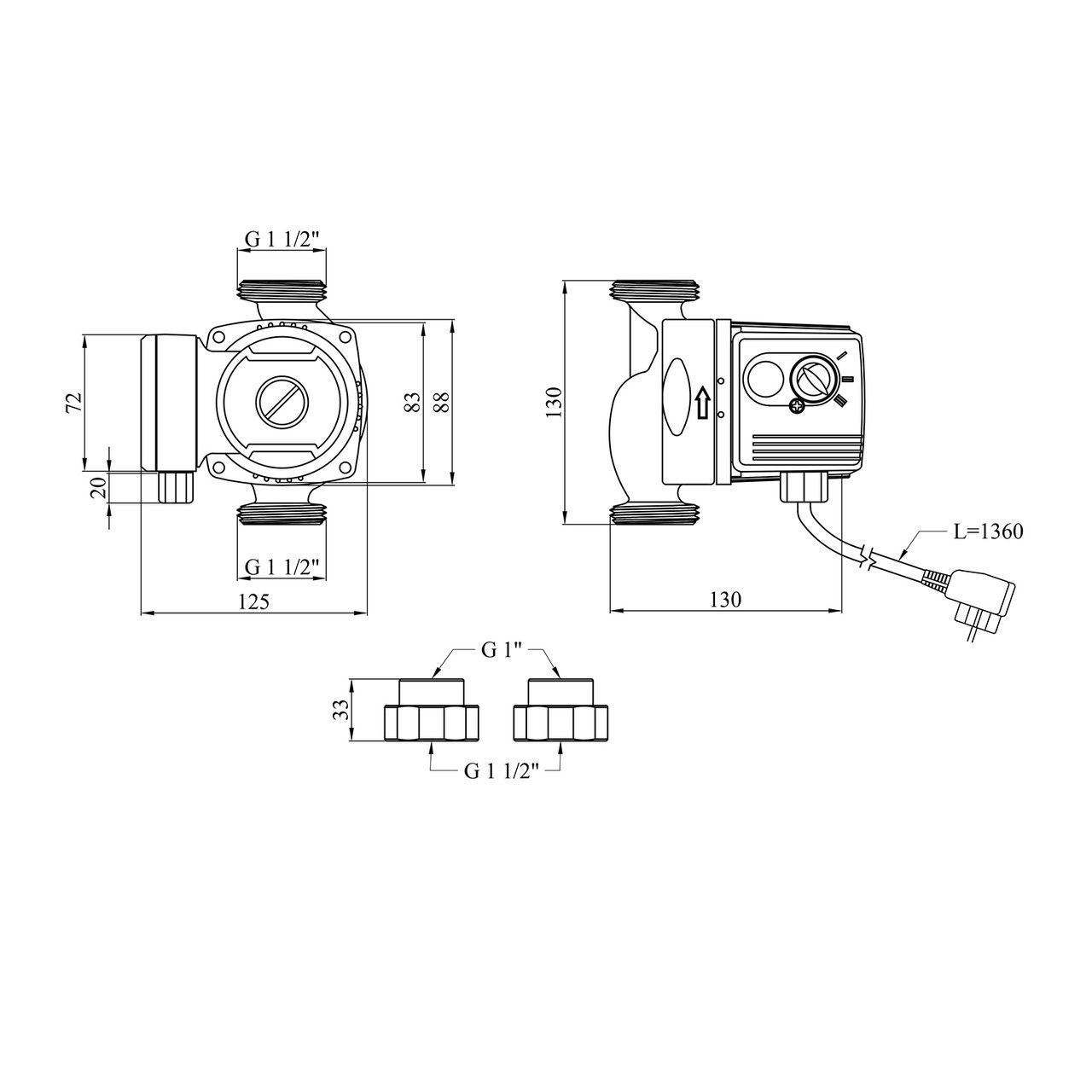 Диаметр подключения1 1/2"