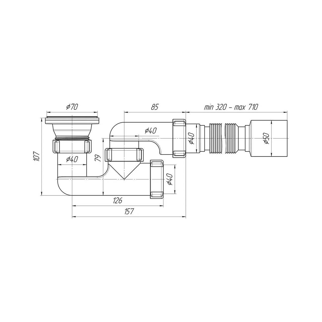 Диаметр патрубка в канализацию, мм40/50