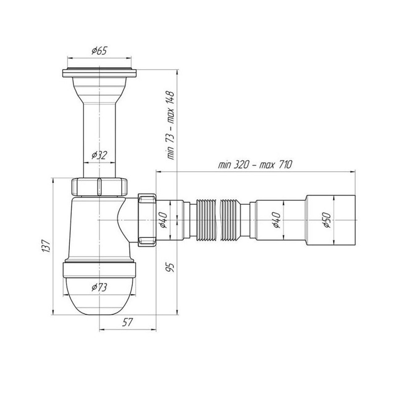 Сифон для раковины ANIplast с литым выпуском 64 мм, с гибкой трубой 40х40/50 мм C2015EU