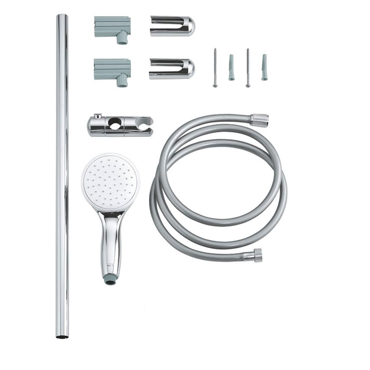 Душевый гарнитур Grohe New Tempesta 100 изготовлен из качественной латуни, благодаря чему эксплуатационный период может быть достаточно длительным. Он состоит из душевой стойки с регулируемым держателем и лейки со шлангом. Монтируется без всяких усилий, установив стойку классическим способом на стену с помощью распорщиков. Такая модель стойки отлично дополнит современный дизайн ванной.