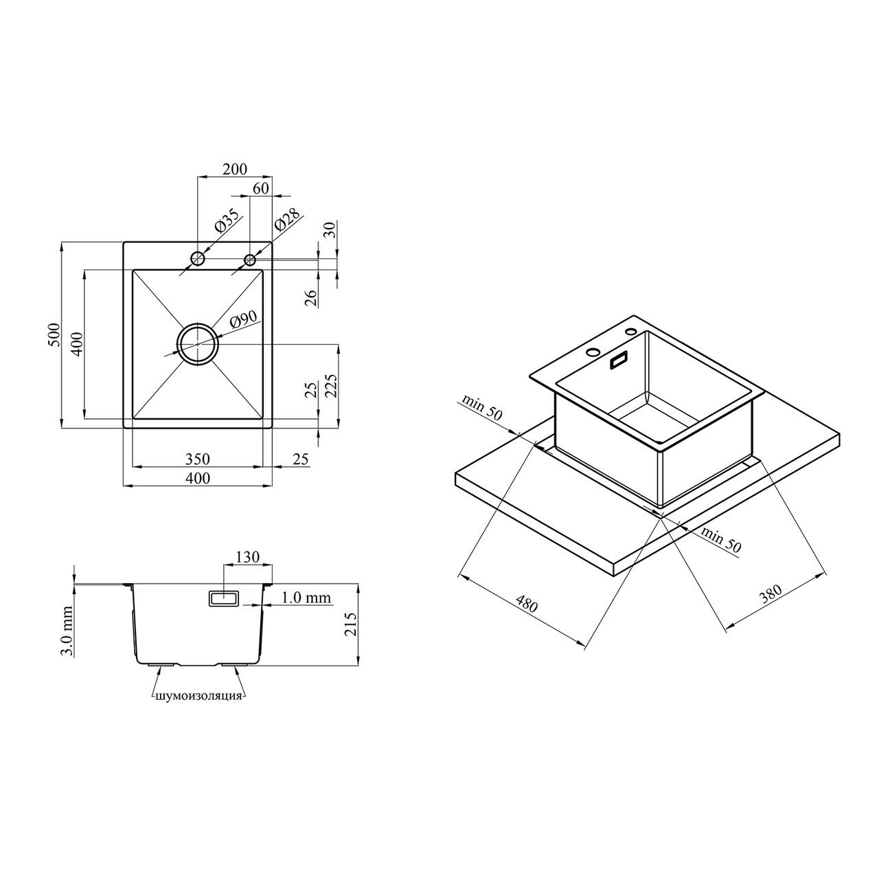 Кухонная мойка Kroner KRP Gebürstet - 4050HM (3/1 мм)