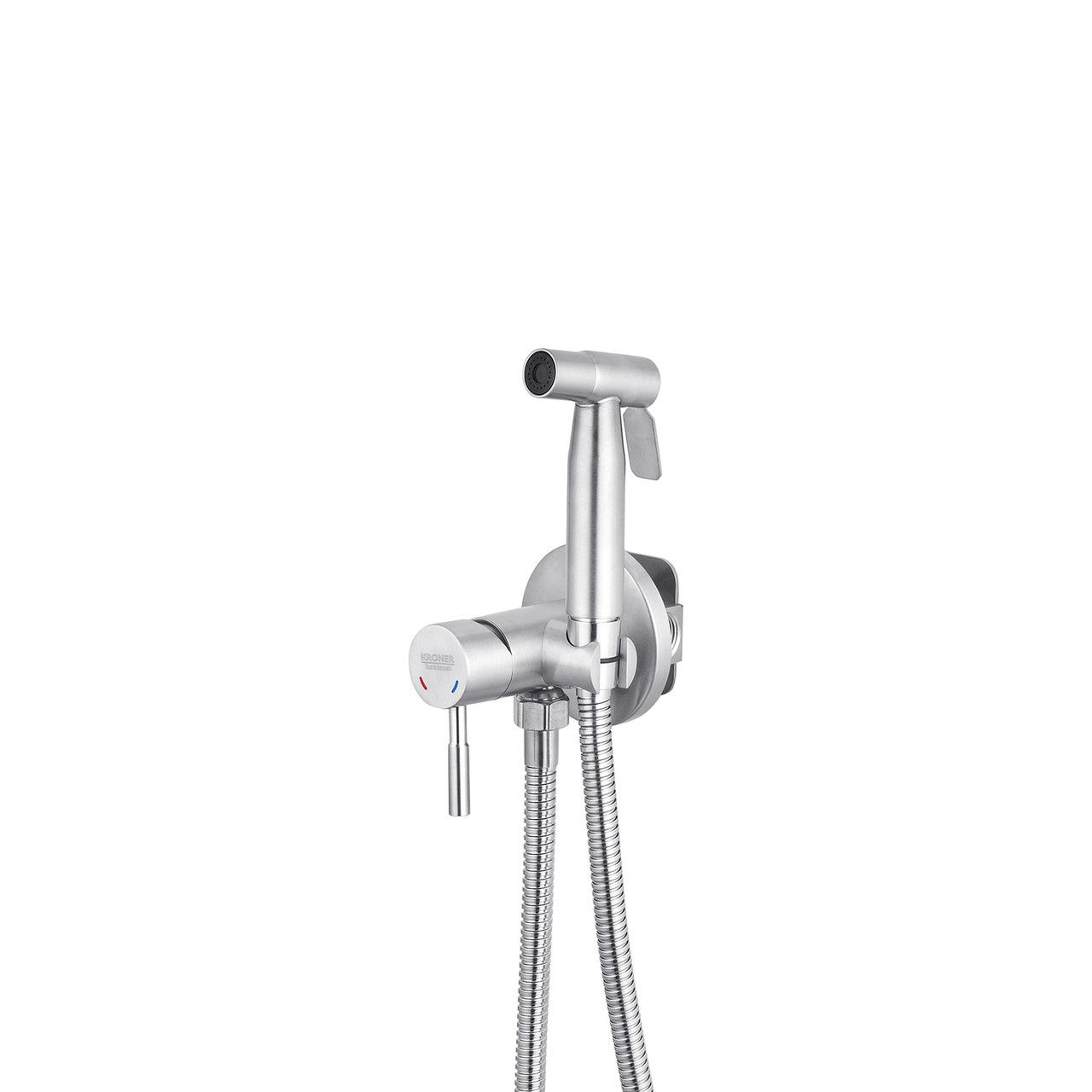 Гигиенический душ Kroner KRP Edelstahl Klassisch-ESG053 отличный вариант для реализации функции биде даже в небольшом санузле. Корпус изготовлен из пищевой нержавеющей стали SUS 304, что обеспечивает долговечность и безопастность в эксплуатации изделия. Смеситель оснащен керамическим картриджем диаметром 25 мм, обеспечивающим плавное регулирование температуры и напора при помощи рычага. В комплекте ручная лейка с нажимной клавишей, а также все необходимое для скрытого монтажа.