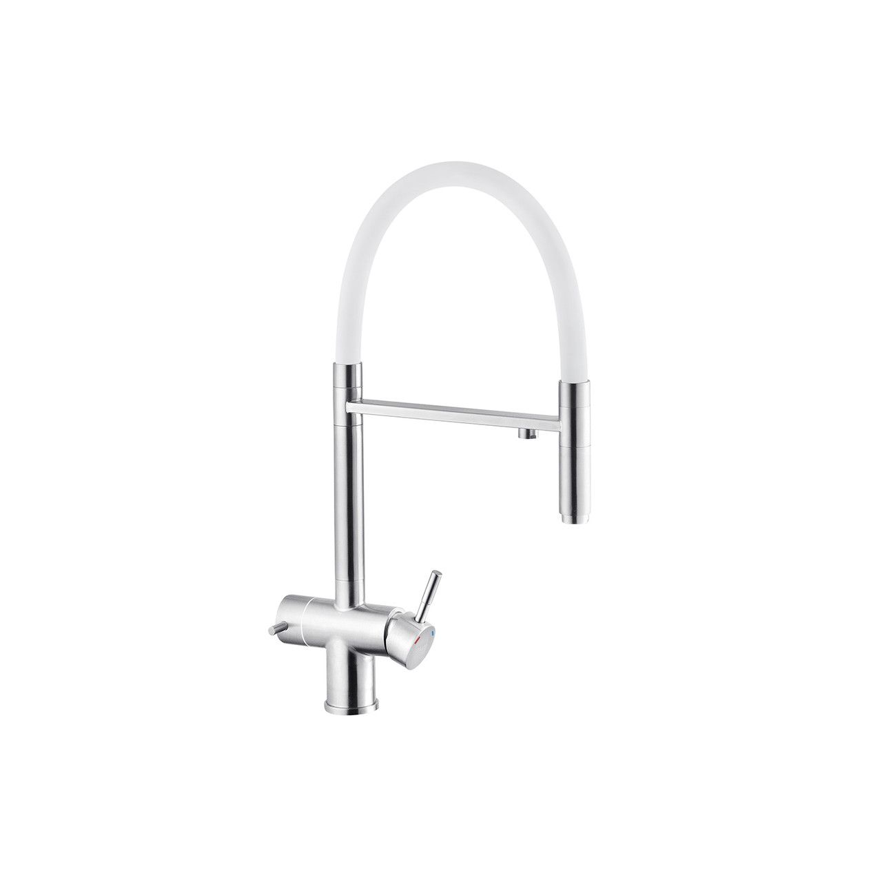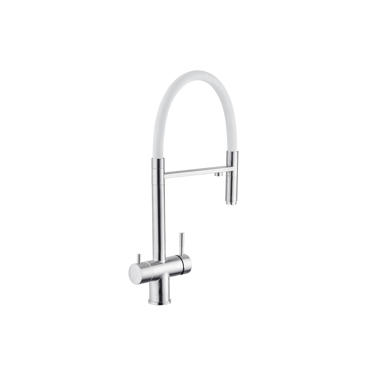 Смеситель для кухни с подключением к фильтру Kroner (KRP) Edelstahl Klassisch-ESG03815WHI изготовлен из высококачественной нержавеющей стали, которая не подвержена коррозии, устойчива к ударам и появлению трещин. Смеситель имеет U-образную форму с 3-мя контурами подключения воды. С участием первого и второго осуществляется подключение холодной и горячей воды, где смешивание происходит с помощью картриджа.