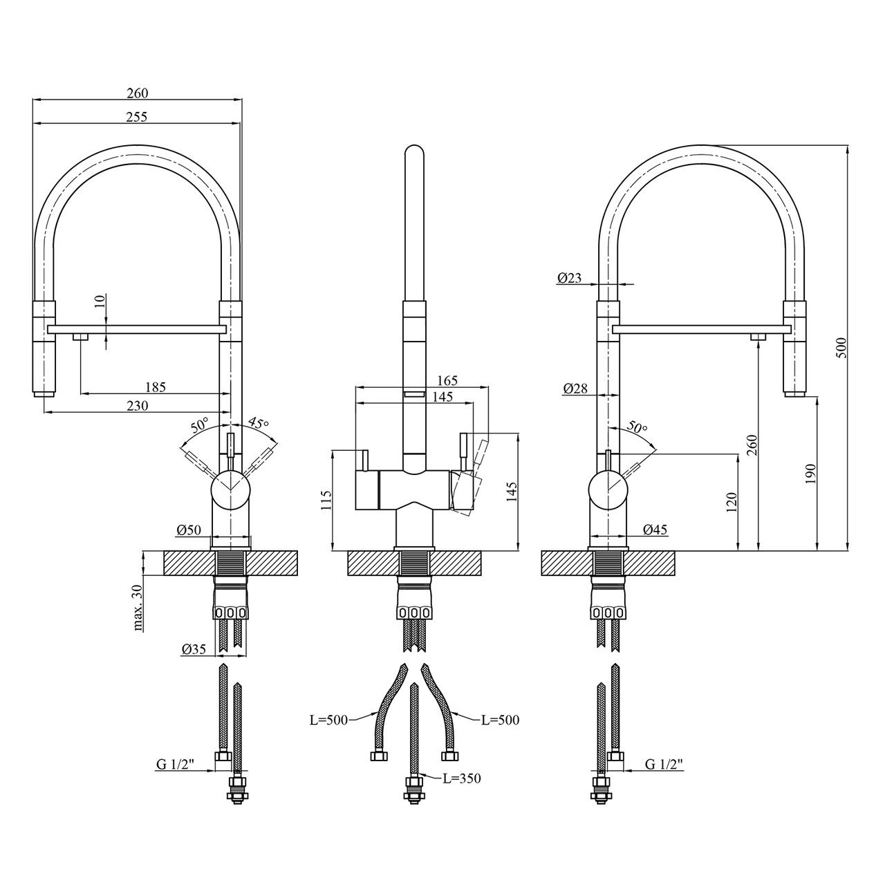 Высота, мм500
