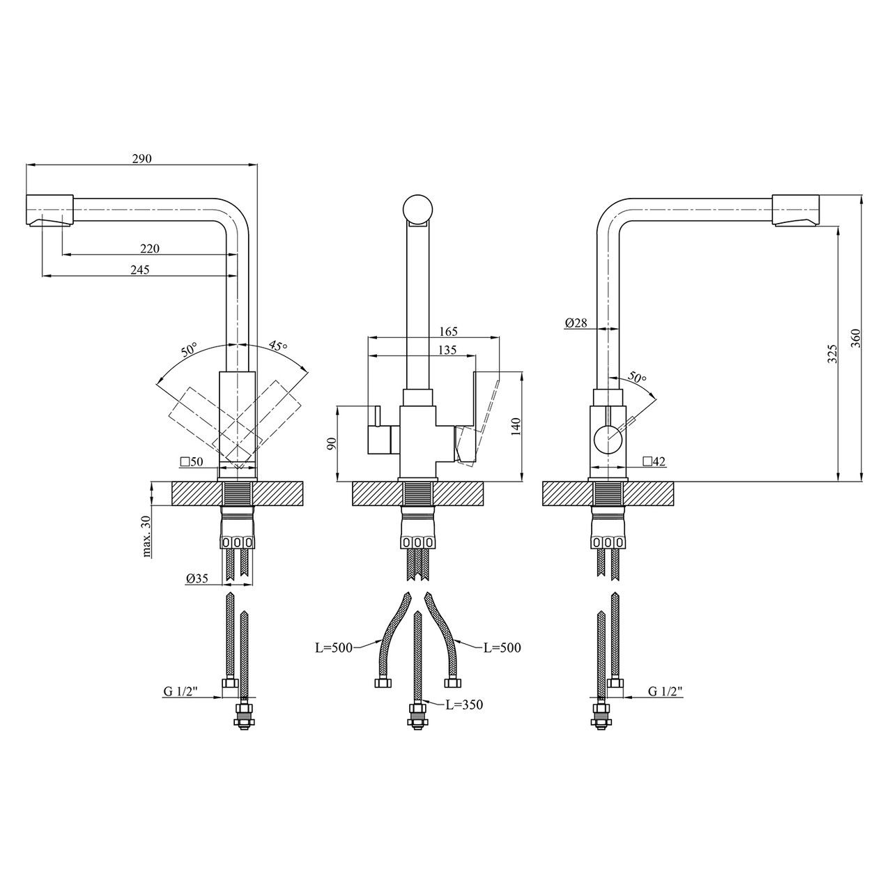 Смеситель для кухни с подключением к фильтру Kroner (KRP) Edelstahl Kubus-SCH03810 изготовлен из высококачественной нержавеющей стали, которая не подвержена коррозии, устойчива к ударам и появлению трещин. Смеситель имеет Г-образную форму с 3-мя контурами подключения воды. С участием первого и второго осуществляется подключение холодной и горячей воды, где смешивание происходит с помощью картриджа.