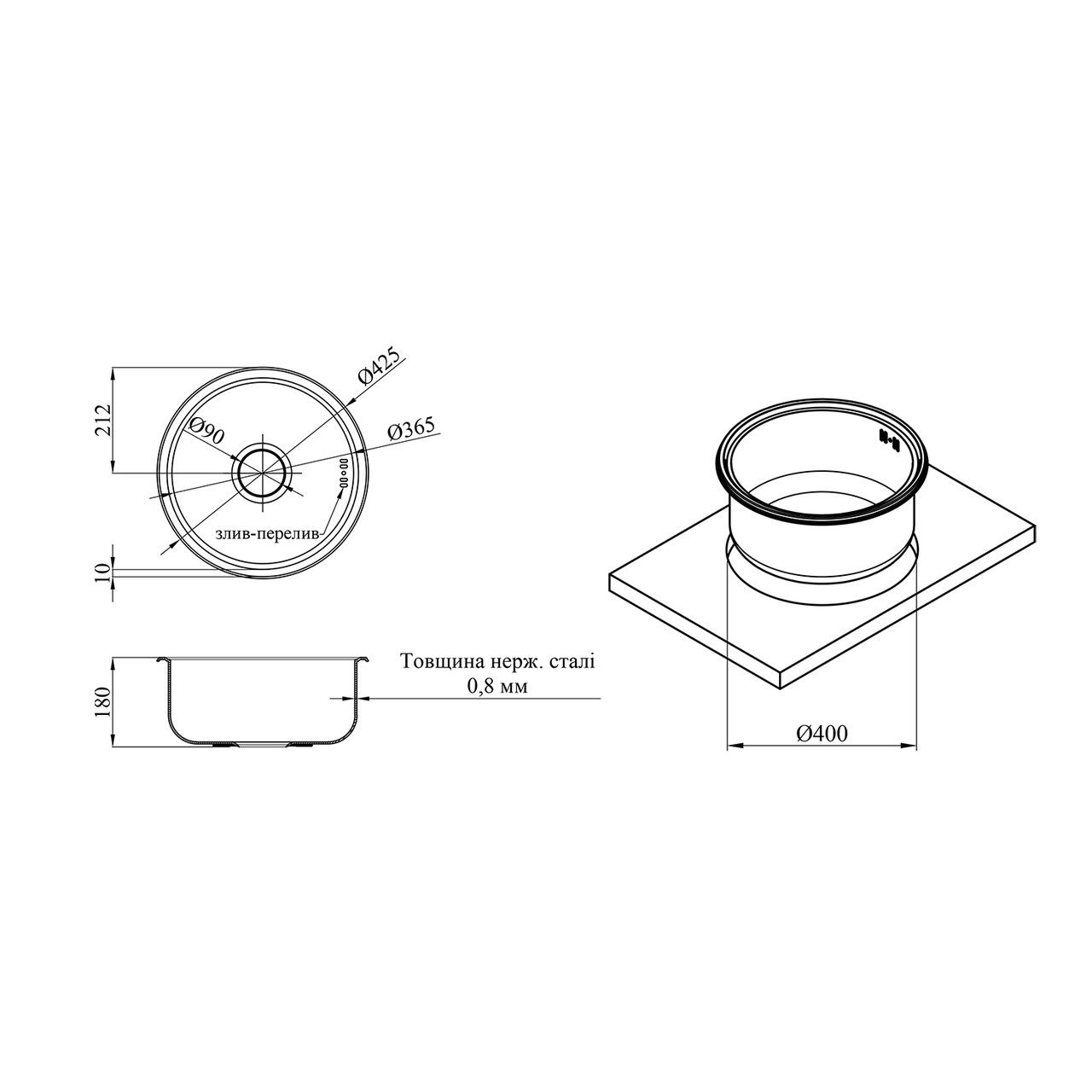 Толщина материала мойки, мм0,8
