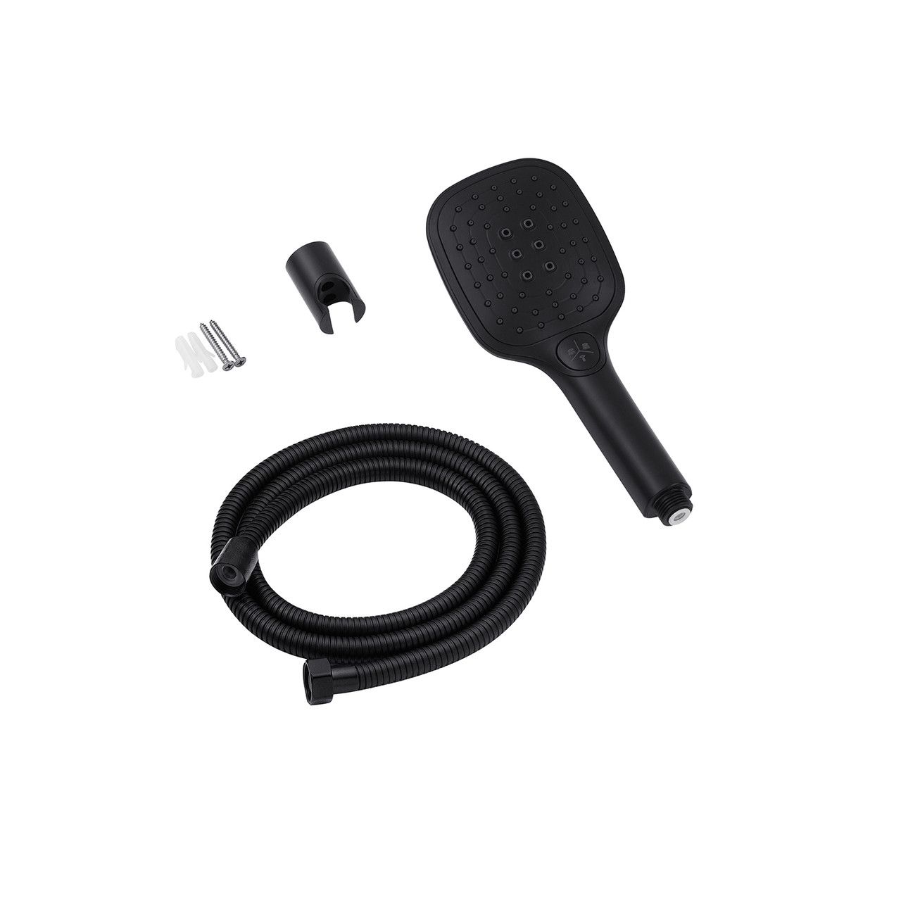 Душевой набор Kroner KRP SET Kubus-SCH800 выполнен из пластика с черной матовой поверхностью, которая имеет привлекательный эстетичный вид и менее подвержен влиянию коррозии. Набор обеспечит максимально комфортный прием душа. Он состоит из лейки для ручного душа, кронштейна и шланга для душа. Монтируется без особого труда и дополнительных подручных средств. Лейка имеет прямоугольную форму и три режима переключения струи. Душевой шланг изготовлен из нержавеющей стали длиной 1500 мм. Кронштейн монтируется благодаря использованию шурупов и дюбелей, что обеспечивает прочный и надежный крепеж душевого гарнитура к стене.