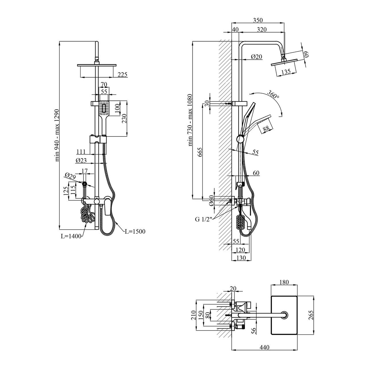 Регулируемая душевая штанга: Возможность регулировки высоты душевой штанги позволяет настраивать систему под различные потребности членов вашей семьи.