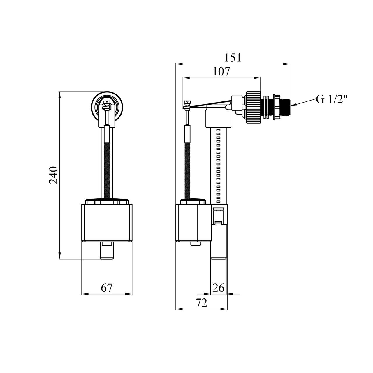 Наливной клапан для бачка унитаза Agua SV02 с боковой подводкой и пластиковой резьбой 1/2" BE0R0207 (КБ-1)