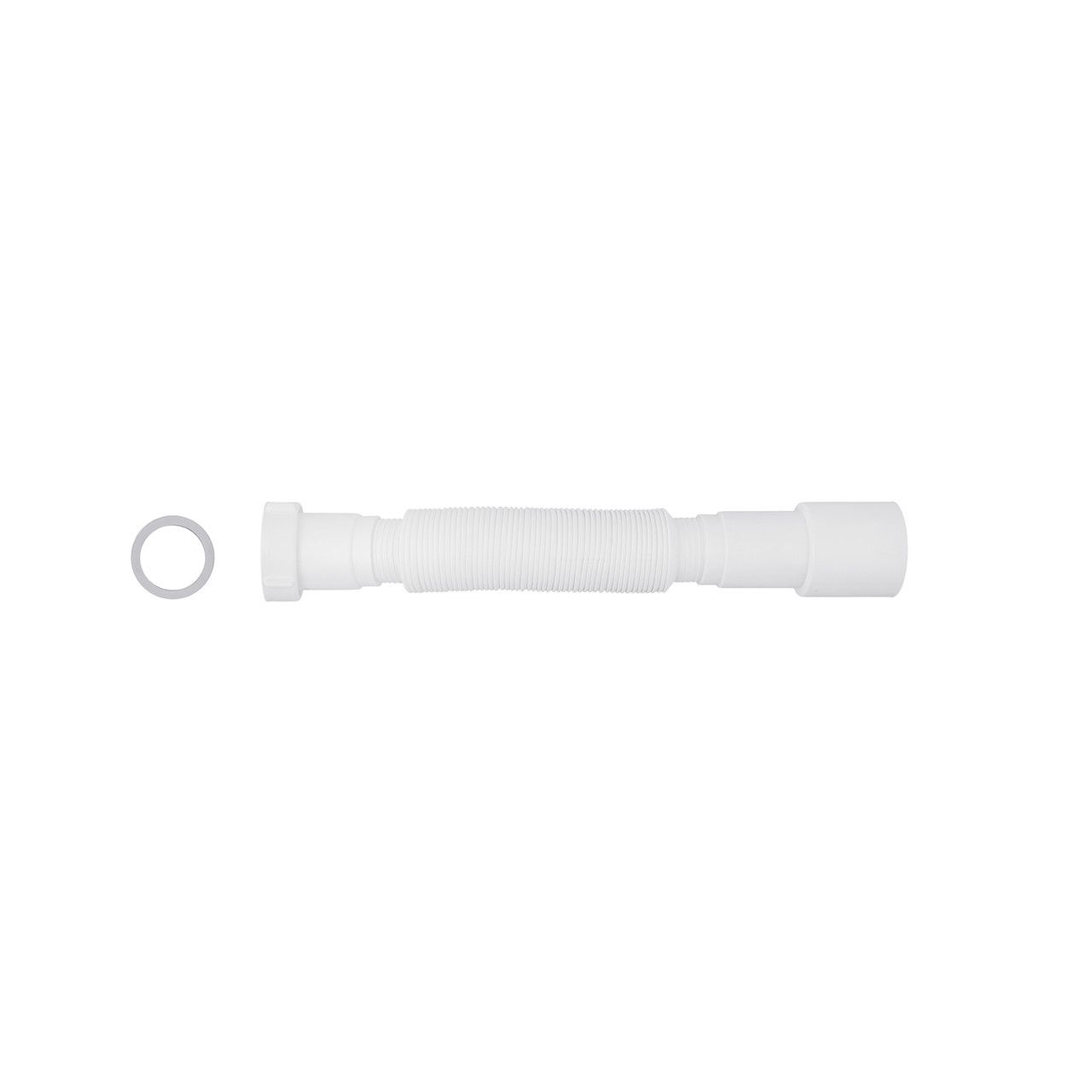 Эта гофротруба оснащена накидной гайкой, что облегчает установку и обеспечивает надежное соединение с канализационной системой. Комплект также включает в себя плоскую прокладку из белого ПВХ, которая обеспечивает герметичность соединения и защищает от протечек.