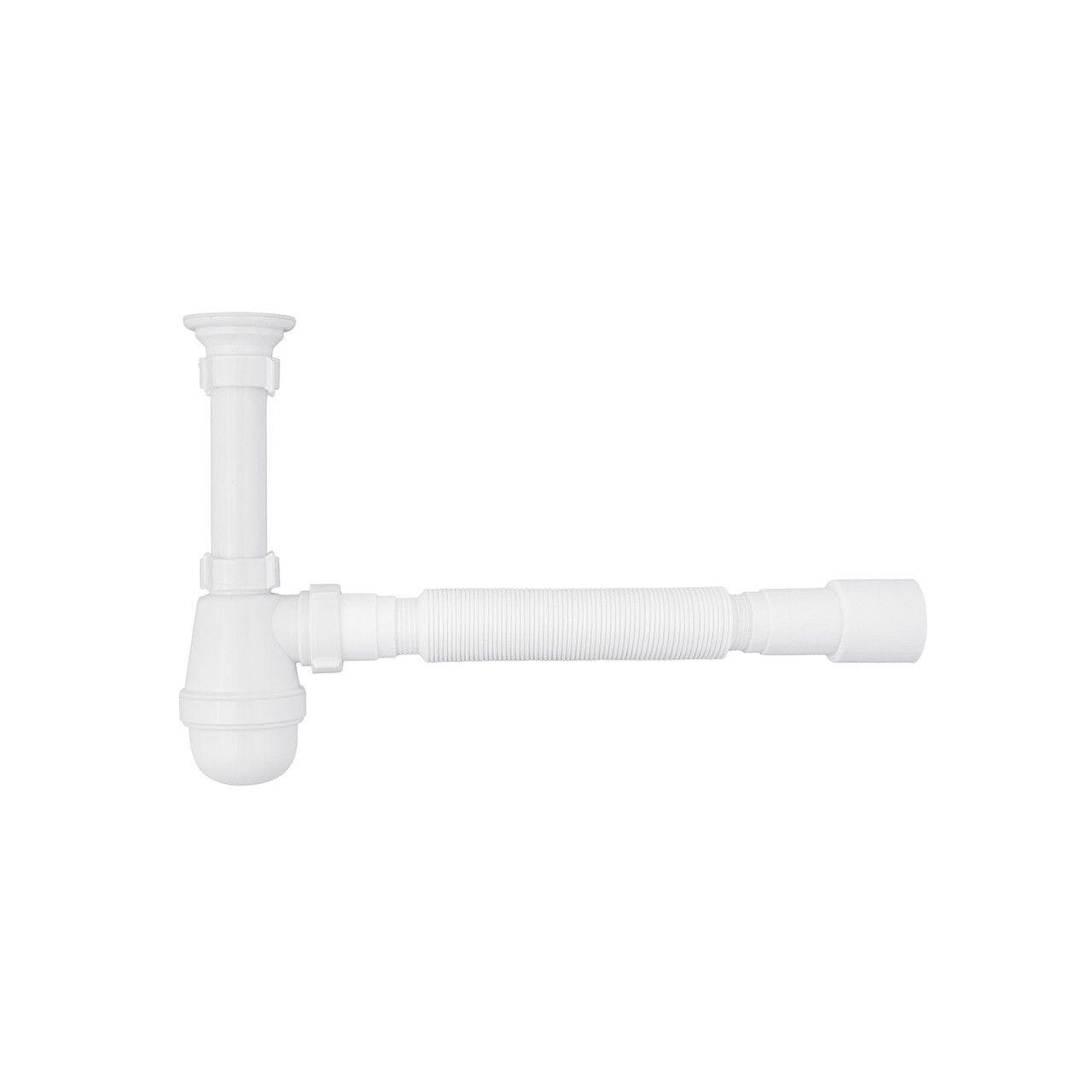 Сифон для раковины Agua TB07 1 1/4''х40/50 мм с литым різьбовим типа "бутылка" - надежное и эффективное решение для вашей ванной комнаты. Этот сифон комплектуется гибкой трубой 40х40/50 для удобного подключения к канализационной системе. Благодаря пропускной способности стока воды через выпуск в 28 л/мин, он обеспечивает эффективное удаление воды без засоров. Сифон имеет сетку выпуска, винт и гайку из нержавеющей стали, что гарантирует его долговечность и надежность. Рабочий диапазон температур от 0 до +95° C делает его отличным выбором для любых условий эксплуатации. Изготовленный из высококачественного пластика и нержавеющей стали, сифон имеет белый внешний вид с элементами стального цвета, что подходит для любого интерьера. Этот сифон оснащен механическим переливом и влажным затвором без мембраны, что делает его простым в использовании и уходе. Со стандартным диаметром подключения 1 1/4" и диаметром трубы в канализацию 40/50 мм, он легко и надежно устанавливается для вашего удобства. Подключение к стиральной машине не предусмотрено, но это надежный сифон без необходимости в ревизии, что обеспечивает его беспроблемную работу в вашей ванной комнате.