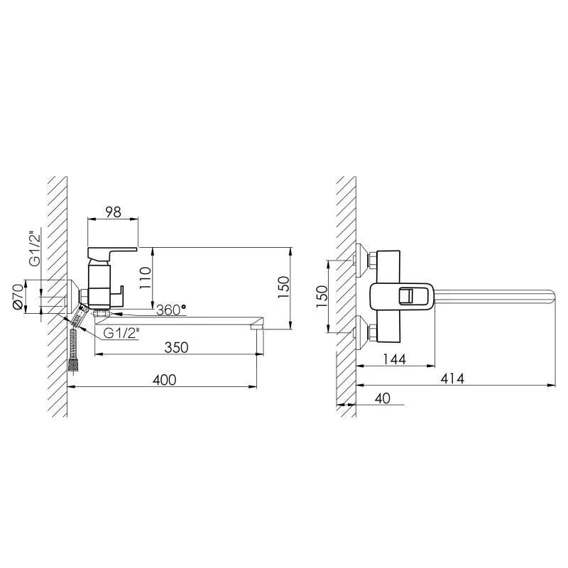 Диаметр подключения шлангов1/2"
