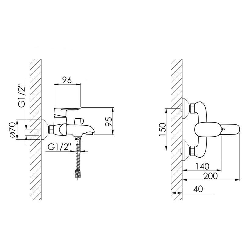 Смеситель для ванны Lidz Wieza 006 (c душевым гарнитуром) (k35) LDWIE006CRM45410 Chrome