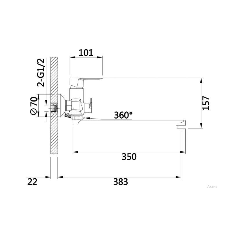 Смеситель для ванны Lidz Latwa 005 с поворотным изливом (c душевым гарнитуром) (k35) LDLAT005CRM45415 Chrome
