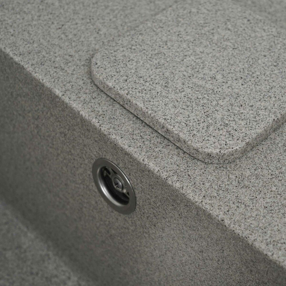 Мойка имеет матовую фактуру и приятный для глаза цвет - серый, что позволяет ей легко вписаться в интерьер кухни.