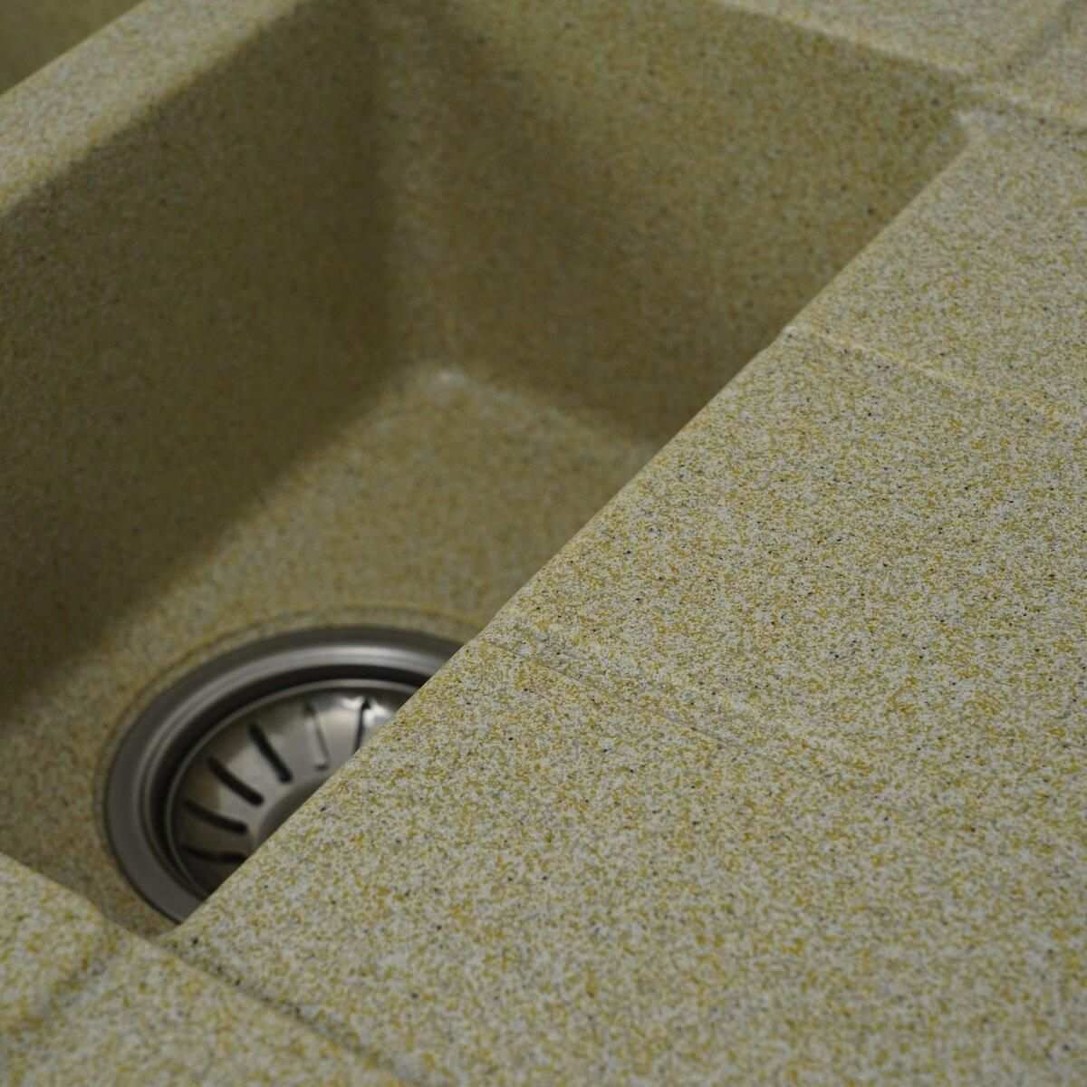 Мойка имеет матовую фактуру и приятный для глаза цвет - бежевый, что позволяет ей легко вписаться в интерьер кухни.