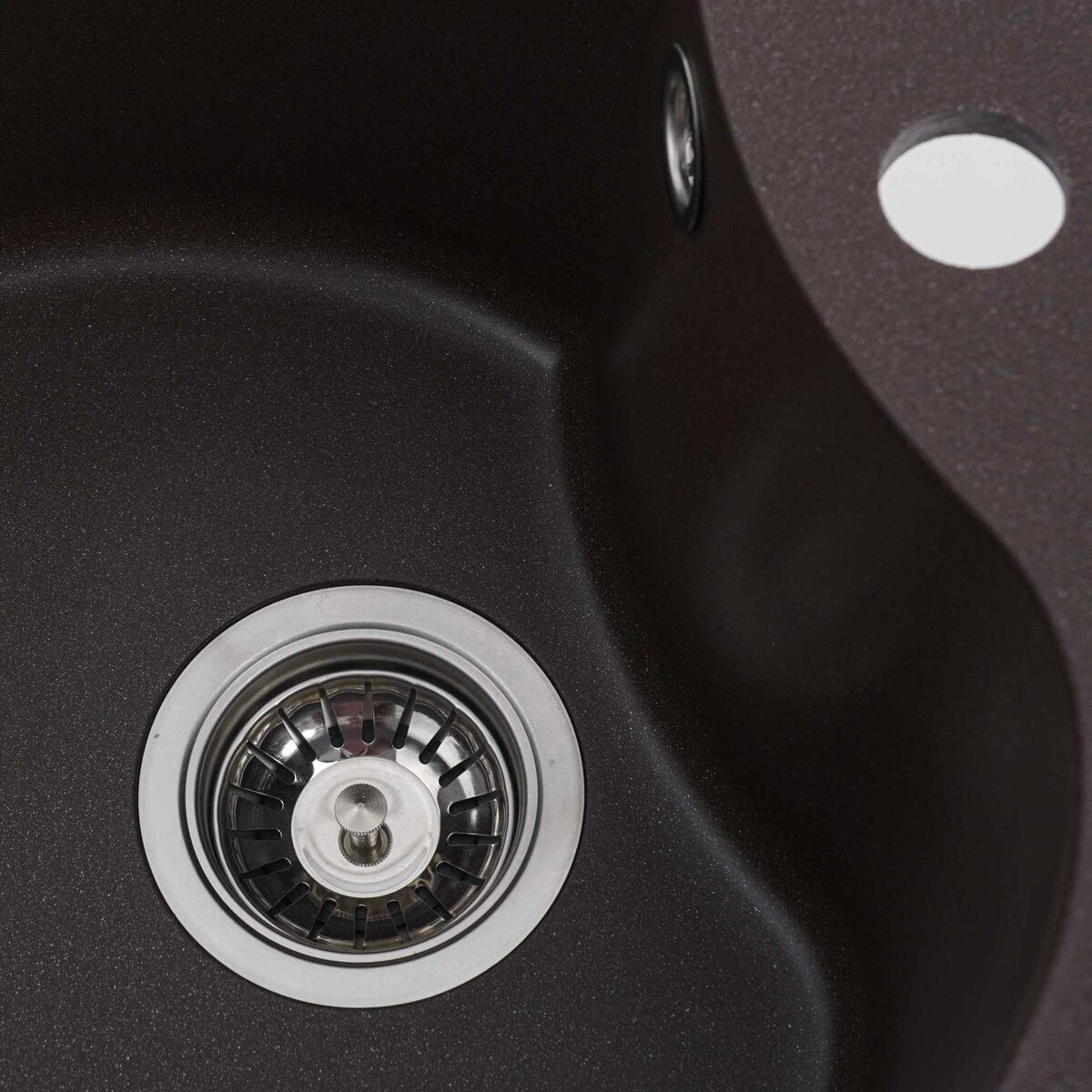 Мойка имеет матовую фактуру и приятный для глаза цвет - мокко, что позволяет ей легко вписаться в интерьер кухни.
