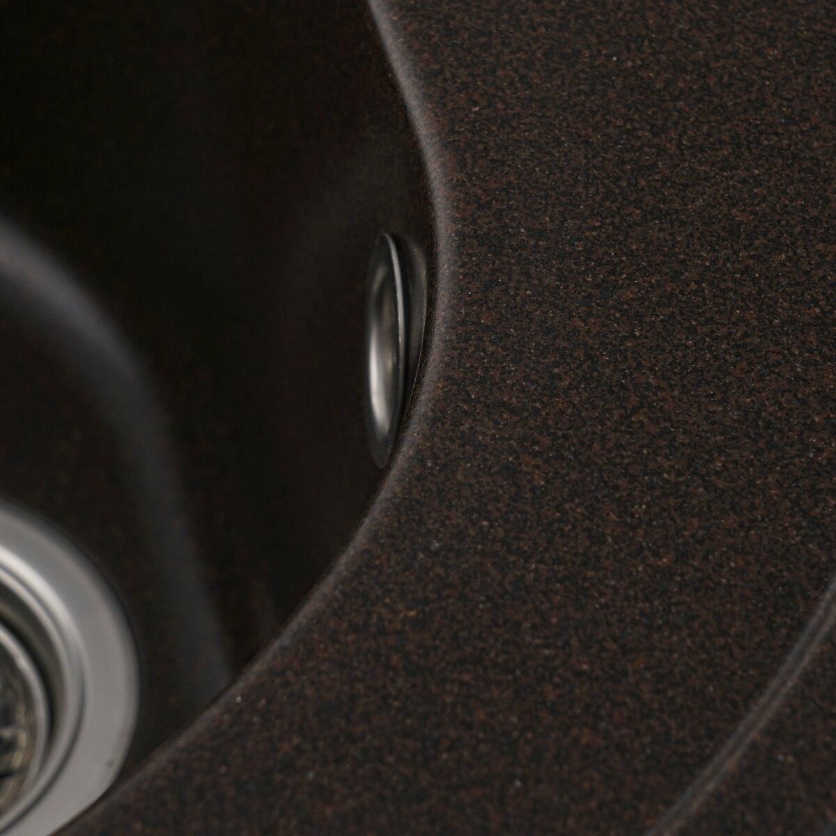 Мойка имеет матовую фактуру и приятный для глаза цвет - шоколад, что позволяет ей легко вписаться в интерьер кухни.