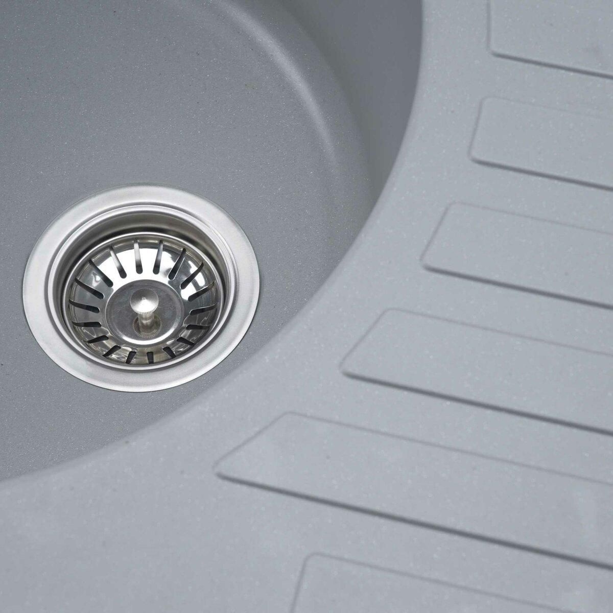 Мойка имеет матовую фактуру и приятный для глаза цвет - серый металлик, что позволяет ей легко вписаться в интерьер кухни.