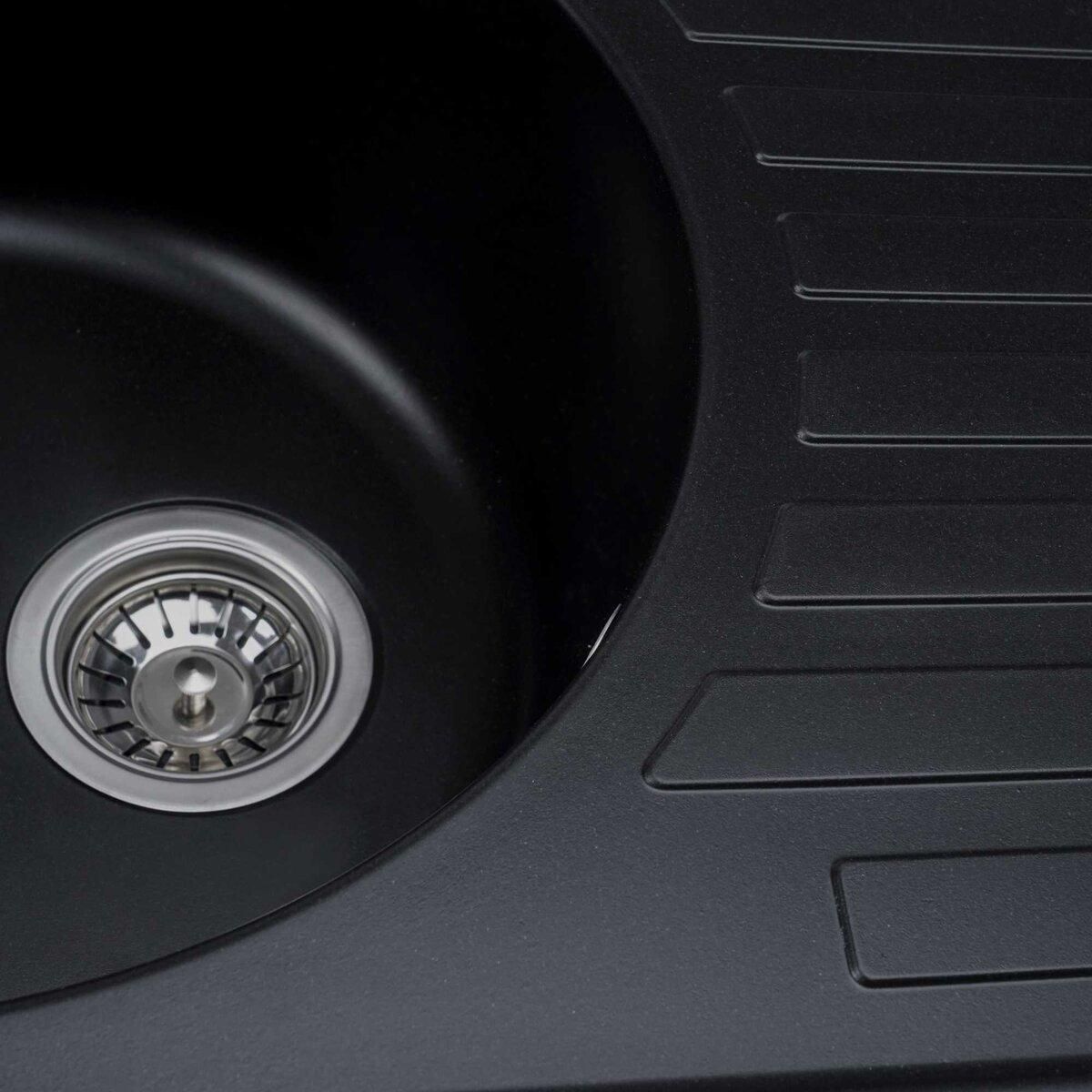 Мойка имеет матовую фактуру и приятный для глаза цвет - черный, что позволяет ей легко вписаться в интерьер кухни.